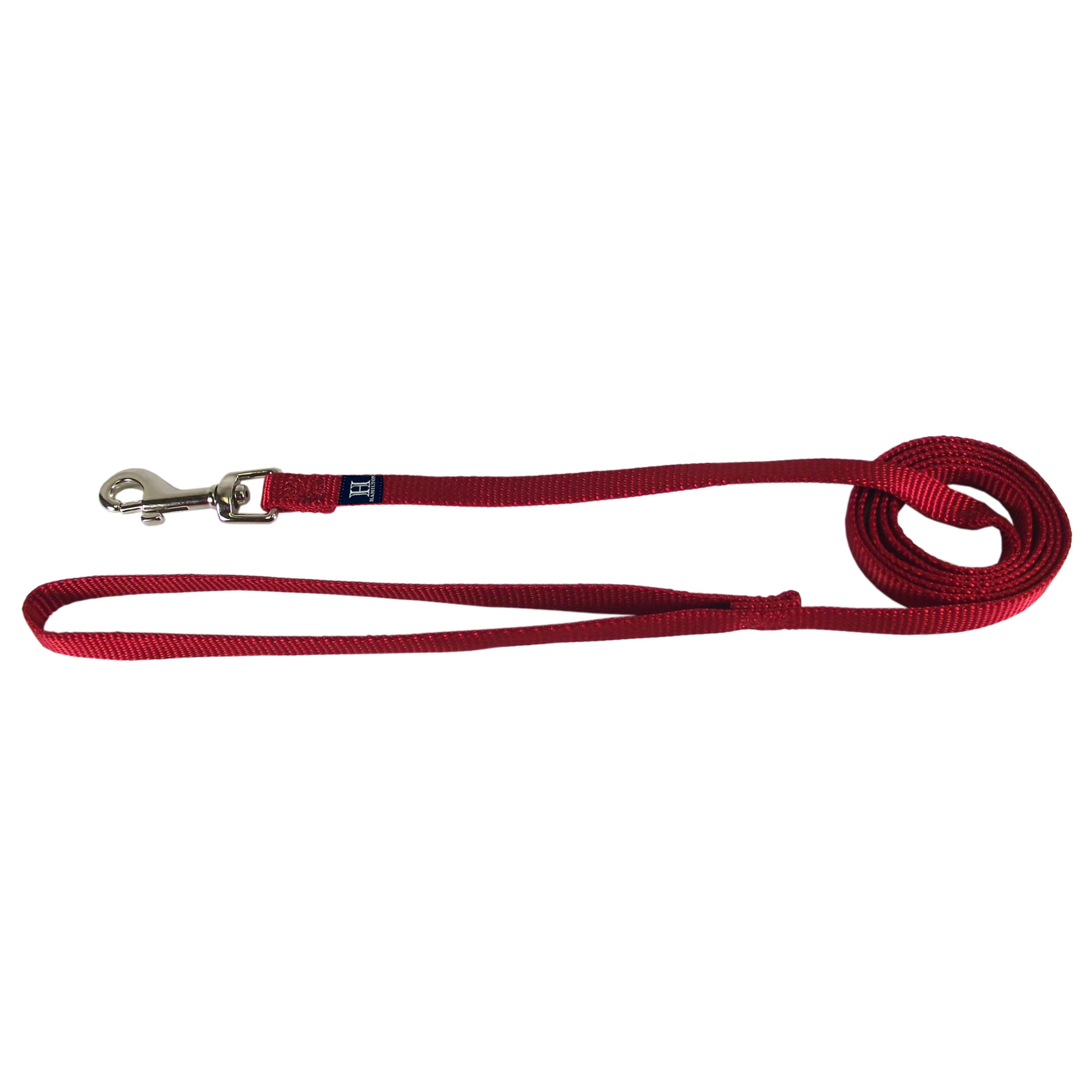 Includes one Hamilton Single Thick Nylon Dog Leash with Nickel 360° Swivel Bolt Snap, 5/8 inch x 6 foot, Red Ideal Length: 6 foot length dog leash is a perfect balance between freedom and control during walks, giving your pup some freedom while allowing you the control to keep them close; 5/8" width is ideal for Small/Medium sized dogs Durability & Strength: Nylon webbing is 100% first run nylon, custom dyed to reduce fading and bleeding; Ends are Box Stitched with a heavy duty thread for a secure hold; Nickel 360° swivel bolt snap helps prevent the leash from twisting and tangling Coordinate with a Matching Dog Collar and Harness: All colors in our Classic Nylon collection are available in adjustable dog collars and harnesses for a coordinating set, allowing you and your furry friend to enjoy outdoor activities in style Quality, Comfort & Safety Since 1973: Hamilton has been a leader in pet & large animal products for over 50 years; We provide quality products that are durable and stylish; Hamilton has an option to suit any animal owner's needs