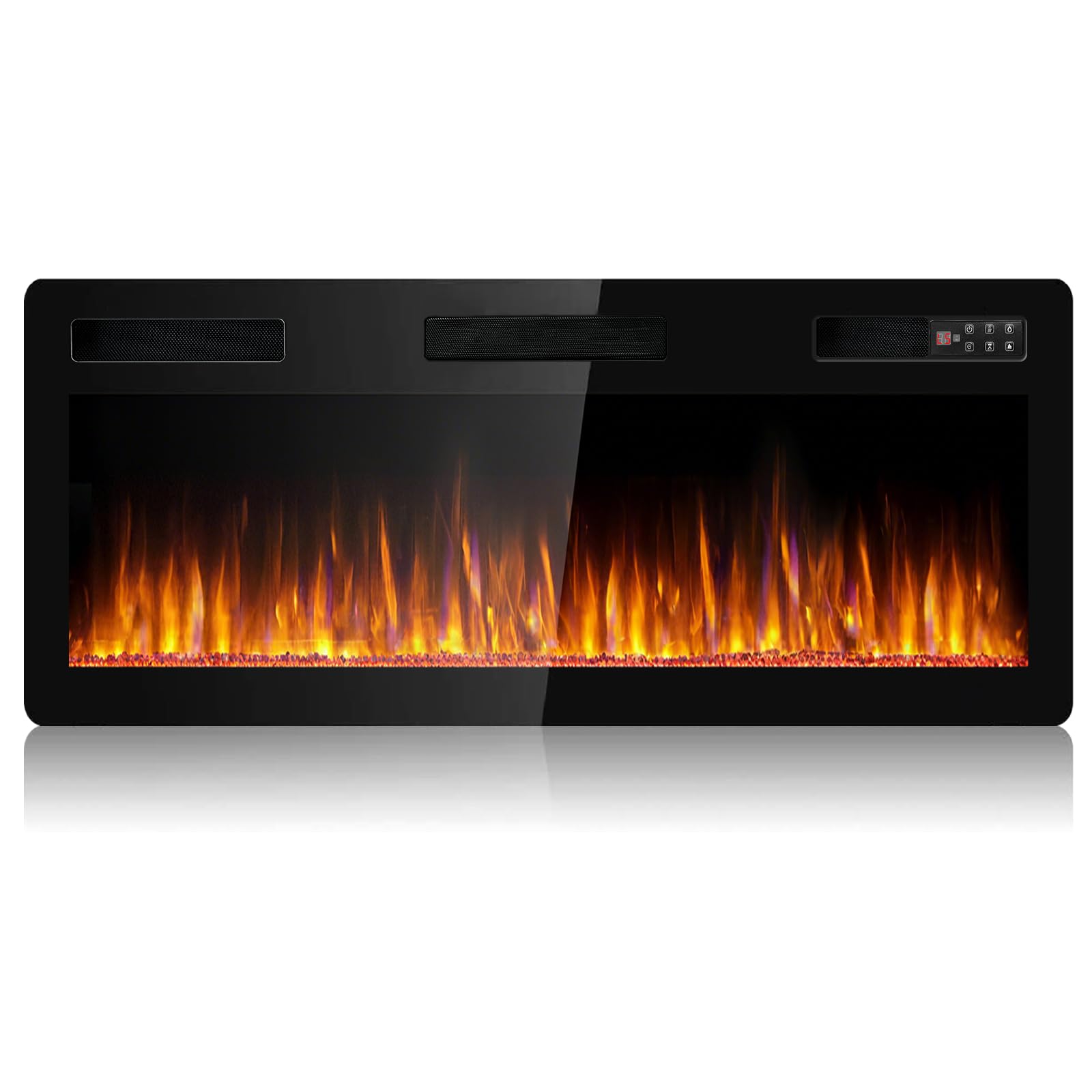【Thin in thickness】Bossin electric fireplace features a thin, pratical and light design. At 3.85 inches thickness, black linear frame,tempered glass with front air outlet., it’s a sleek contemporary fireplace perfectly fit for your living room,entertainment center and bedroom. 【Big on capability】Full spectrum LED colors,12 flame and LED flame bed color modes;5 flame speed modes;5 flame brightness levels,specially automatic flame design. Come with crystal glass stone, realistic flame will offer a true-to-life fire experience. 【Easy to operate】Remote and touch screen make it more convenient to control every function of electric fireplace,power switch,1-8 hours timer control,independent switch of heating and flame,adjustable flame color and speed,sleep mode function. 【Quiet on heating】 The noise the fireplace heater makes is lower than 40 dB,750W / 1500W modes can be adjusted accordingly for both warm and energy saving purpose. The supplemental zone heating is for up to 400 square feet. 【Customer Service】Let BOSSIN electric fireplace warm and decorate your home and life. BOSSIN electric fireplace