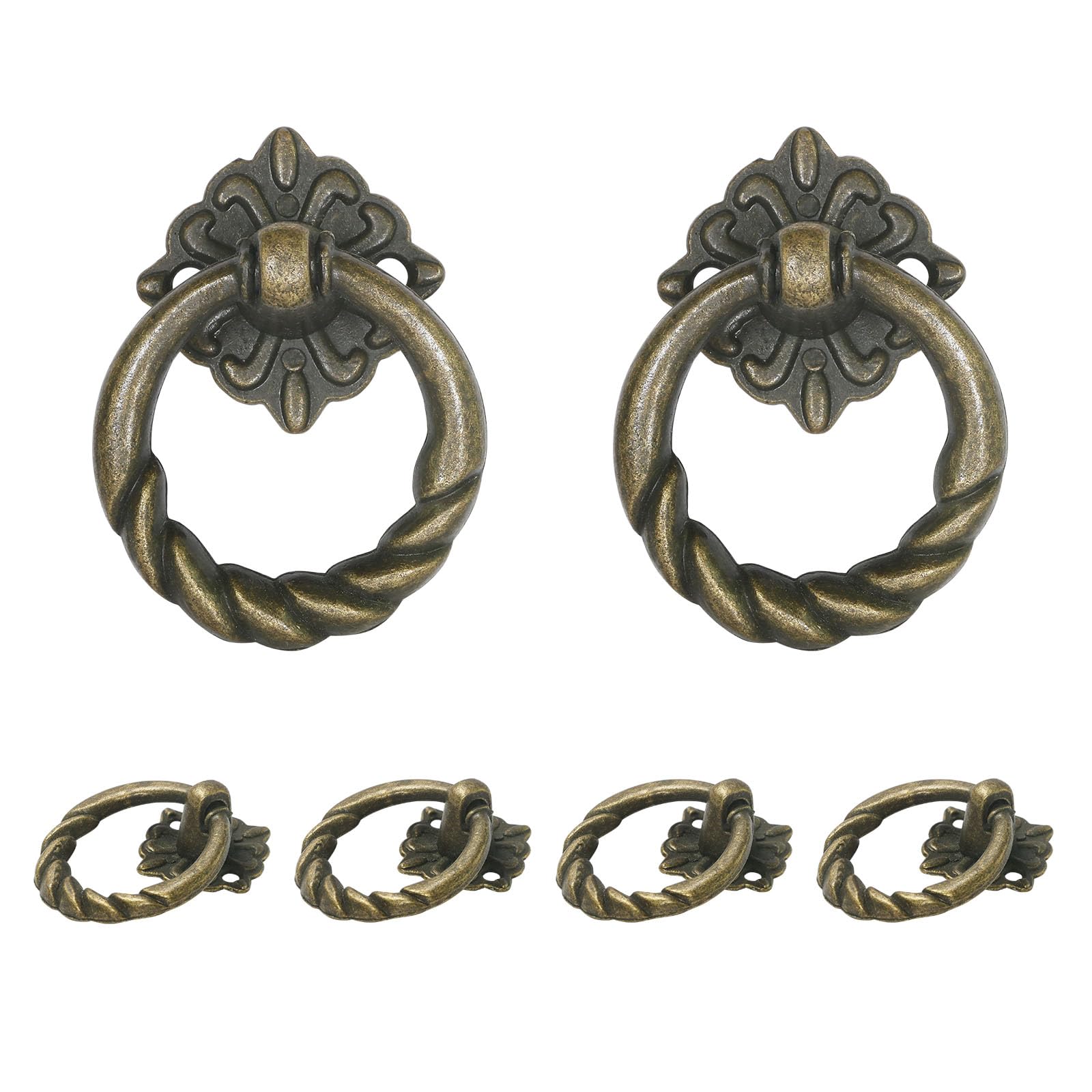 Zernmiarder 6pcs Bronze Flower Drop Ring Drawer Pulls, Small Vintage Cabinet Ring Handles, Metal Drawer Knobs for Dresser Drawers Cupboards($7.99Value)