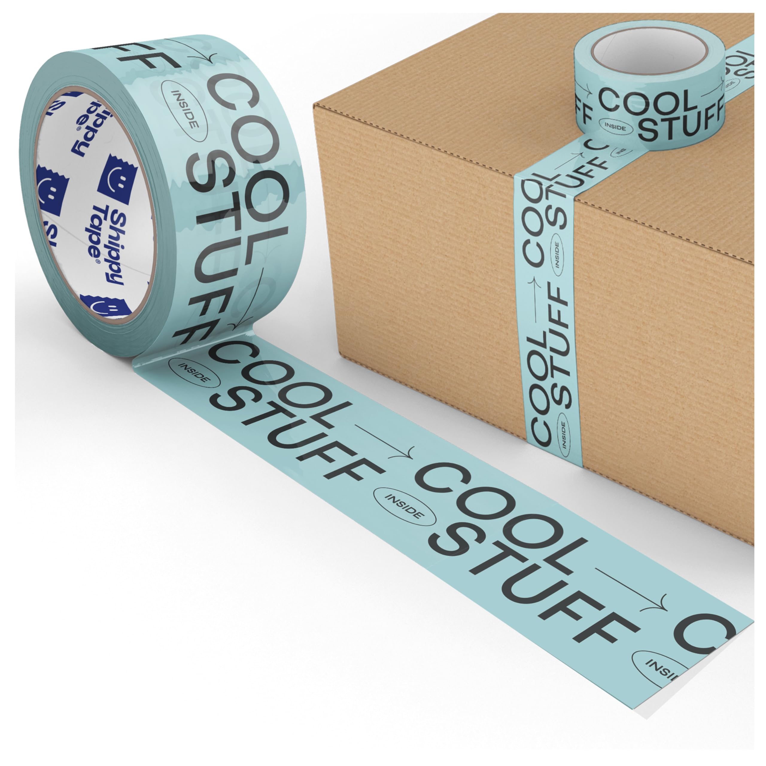 MEGA ROLL: 330 feet (110 yards) of Thank You packing tape—3× longer than our standard rolls and 6× longer than mini rolls—ideal for Etsy, Poshmark, and moving boxes. CUTE & COLORFUL: Bright, modern design with a fun bubble font to create happy unboxing moments. SELF-ADHESIVE: Easy to use—fits standard 2-inch tape dispensers with no water or custom designs needed. HEAVY-DUTY: 2.6 mil thick BOPP tape with strong stickiness and anti-static protection for safe shipping. SPREAD JOY: Perfect for small business shipping, happy mail, and anyone who loves memorable packaging. Make every delivery more exciting with Shippy Tape — the cool decorative packing tape designed to surprise and delight. This designer printed shipping tape features bold black lettering on a bright turquoise-green background that proudly announces “COOL STUFF INSIDE.” It’s the perfect way to add personality, color, and confidence to your packaging while keeping it securely sealed. Crafted from durable 2.6-mil BOPP material, this cute, self-adhesive packaging tape is strong, smooth, and easy to apply. Each 110-yard roll (330 feet) gives you plenty of tape for bulk orders, gift packaging, and creative branding. Whether you’re sealing small business shipments, thank-you boxes, or handmade gifts, this fun, eye-catching tape turns every package into happy mail.