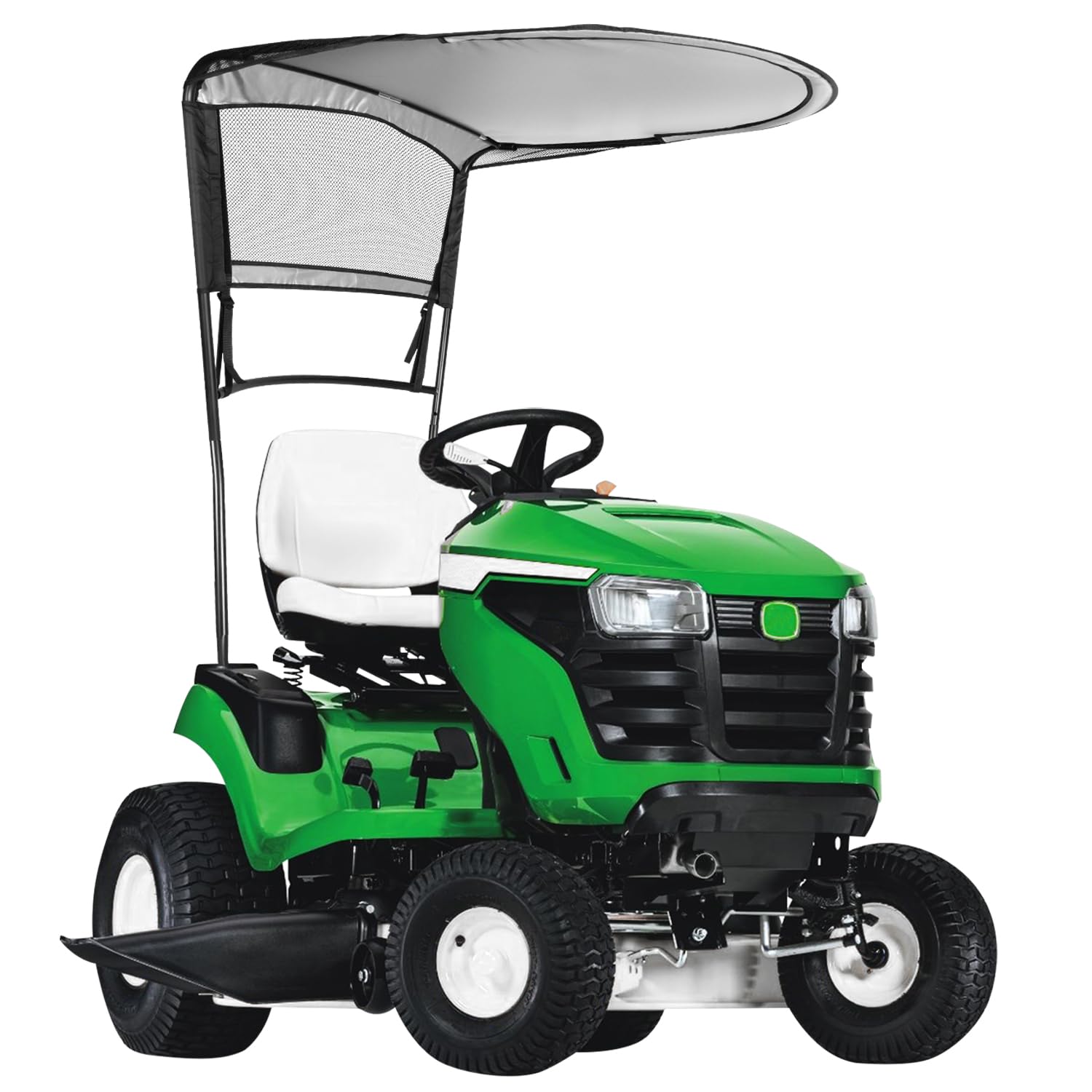 【Great Compatibility】 Fits for John Deere 100 Series, D100 Series, E100 Series, L100 Series, LA100 Series, S100 Series, S200 Series lawn tractors. Also compatible with John Deere S240 Series tractor 2011 and later. 【Practical Function】 The tractor sun canopy can effectively block and reflect heat, harmful UV rays and sunlight, which will protect you from direct sunlight irradiation and prevent high temperature exposure when mowing. 【Direct Replacement】 This mower sunshade is a perfect substitution for JD LP68122 and LP51702, manufactured and tested to meet original equipment standards and performance. 【Superior Construction】 Made of premium tough woven polyester, abrasion resistant and tear resistant. It takes a breeze to install this sun canopy on the mower. Simply slip into Cargo Mount system ports for hassle-free installation. 【Satisfaction Guarantee】 If you're not satisfied with the product, simply return it in 30 days or get a replacement during 1 year warranty via our customer service. If your item is defective, incorrect, arrived damaged or any other problems, please contact us (include pictures if possible) and we will reply in 24 hours. Fitment:
