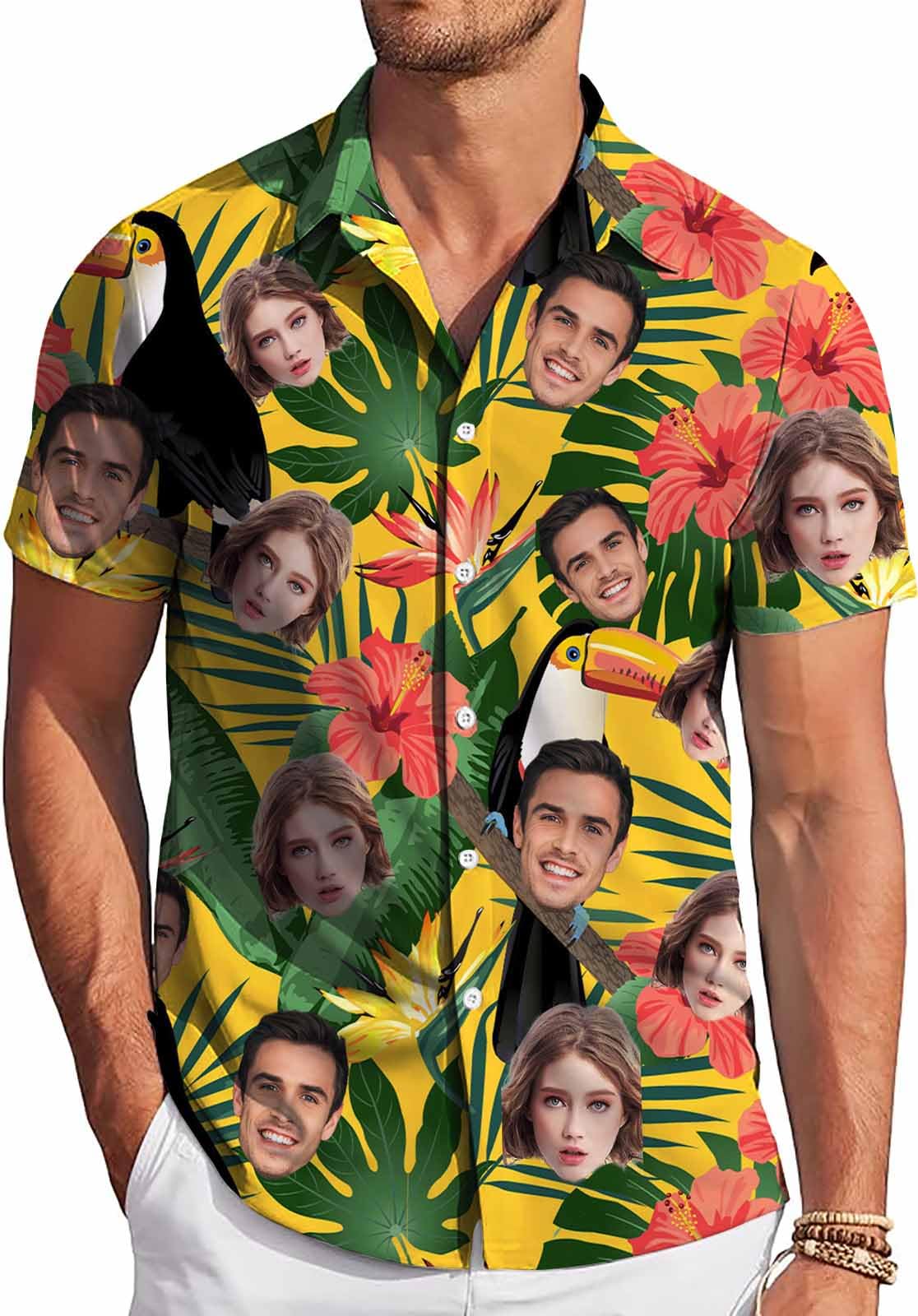{Soft & Breathable Fabric} - Click “Personalize” to choose size. Handmade shirts are made from premium stretch polyester, super soft ,lightweight and comfortable. Silky skin touch feeling and quick to dry fabric, machine washable and winkle free. {Stylish & Funny} - It would be a funny surprise gift for men with boyfriend, girlfriend, pet, husband, wife, kid's face on it. Life needs something different and interesting, wear it on vacation around the beach or other activities. {Unique Gifts} - A gift that can make people laugh heartily. For boyfriends,husband,father’s day gifts, enhancing relationship with this customized men shirt in Father’s day, anniversary day, Valentine's Day, birthday...Suitable for casual daily, traveling, Hawaiian, Aloha, Beach, Sailing, Fishing, Party, Vacation and Summer. {Premium Quality} - Clear print with fade resistant fabric with smooth touching feeling. S~3XL sizes are available. Check the size chart carefully before placing an order. And to get a best print effect, the photo need to be as clear as possible. {Order Rightly} - Click "Personalize" button and then click "BROWSE" to upload your image button,our designers will do the rest to crop out a perfect face for you. Any problems please feel free to contact us, we promise a perfect solution for you. Fashion Neckline