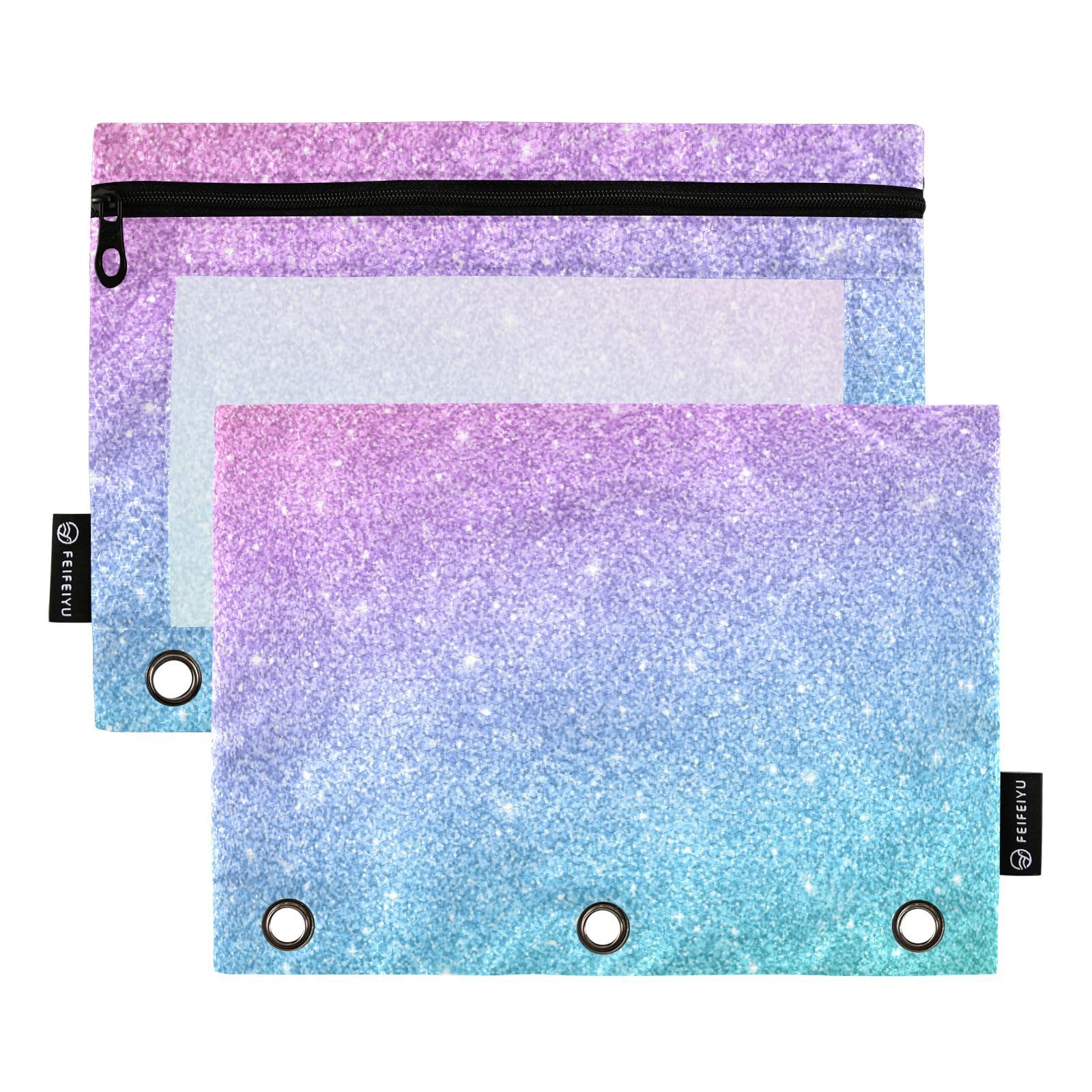 High Quality Material -- This binder pencil pouch is made of durable lighted soccer grid with clear PVC, durable and reliable, waterproof and tear-proof which can be reused. Large Capacity Zipper Pencil Pouch -- Size: (25x18 cm)9.8"x7". fit for standard 3 ring binders.With ample space for all your writing essentials, this large pencil case is perfect for keeping your pens, pencils, and other supplies organized. Whether you're a student, artist, or professional, this case has got you covered. Transparent Window & Unique Design -- The pencil pouch with a beautiful print reflects your personality better than a pure colour, and the PVC clear window design allows you to see what's inside at a glance, helping you to find what you need easily. 2 Pack & Three Metal Holes -- The three holes are spaced 4 inches apart and fit into a standard 3-ring binder, which fits easily into the binder for easy storage and use, and the metal grommets ensure that the pencil case will not be torn off. 3-ring Multi-Purpose Pen Case -- The binder pencil pouch is perfect for storing pencils, pens, erasers and other school supplies; it can also be used as a storage pouch for cosmetics, passports, medicines and other small items. Our these zippered 3 Ring pencil binder pouch are great not only for school related supplies but also for busy bags, office daily using. There are well-constructed, nice bright colors and durable. You can use them in many ways