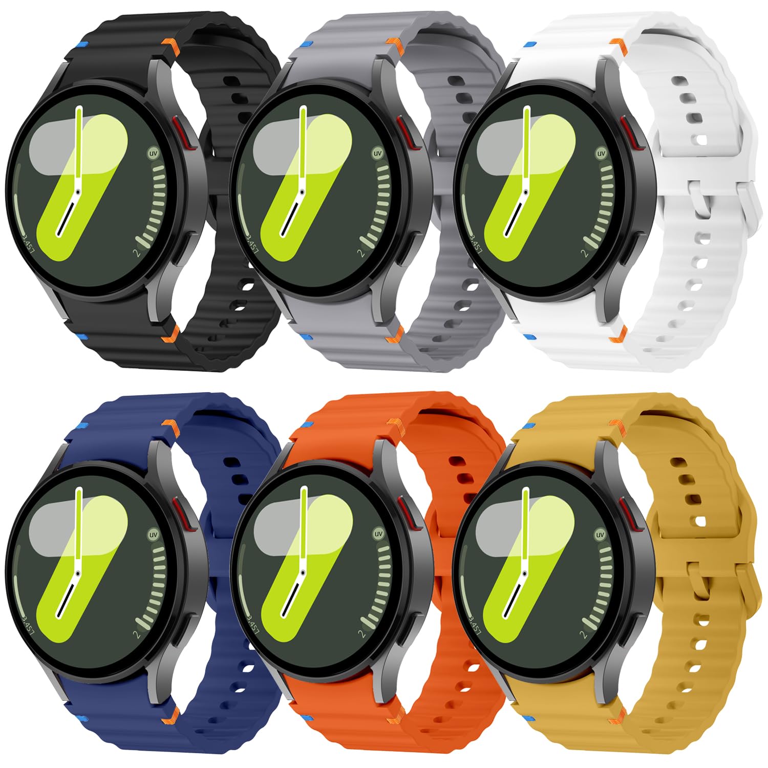 【Compatible Model】The galaxy watch 7 bands is compatible with Samsung Galaxy Watch 7 FE 6 5 4 44mm 40mm Band/Galaxy Watch 6/4 Classic 47mm 43mm 46mm 42mm/Galaxy Watch 5 Pro 45mm 【Newest Galaxy Watch 7 Bands Style】 This galaxy watch 7 FE 6 5 band 44mm 40mm is your essential accessory. Easily change your personalized strap with a single tap.Whether you're out and about or on the go, you can easily change the bands for galaxy watch 7 easily which can give your watch a great new looking 【Comfortable & Breathable】The band is made of innovative materials with a corrugated surface pattern and embellished with colorful stitches to add a stylish touch.Whether it is running or daily fitness training,this band compatible for Samsung galaxy watch 7 band galaxy watch 6 5 FE which is excellent breathability can make your sports life more exciting and keep you comfortable even if you sweat. 【No Gap Galaxy Watch 7 Sport Band】 According to the design of Galaxy Watch 7/FE/6/5/4 precise cutting to achieve seamless connection.This Bands compatible for samsung galaxy watch 7 40mm 44mm band is tailored to your sports life and takes your fitness dexperience to the next level. 【Best For】Ideal for Birthday, Mother's Day, Father's Day, Anniversary, Valentine's Day, Christmas Day, Thanksgiving Day. watch 7 bands offer the best until our customers are satisfied. Compatible with Samsung Galaxy Watch 7 Band