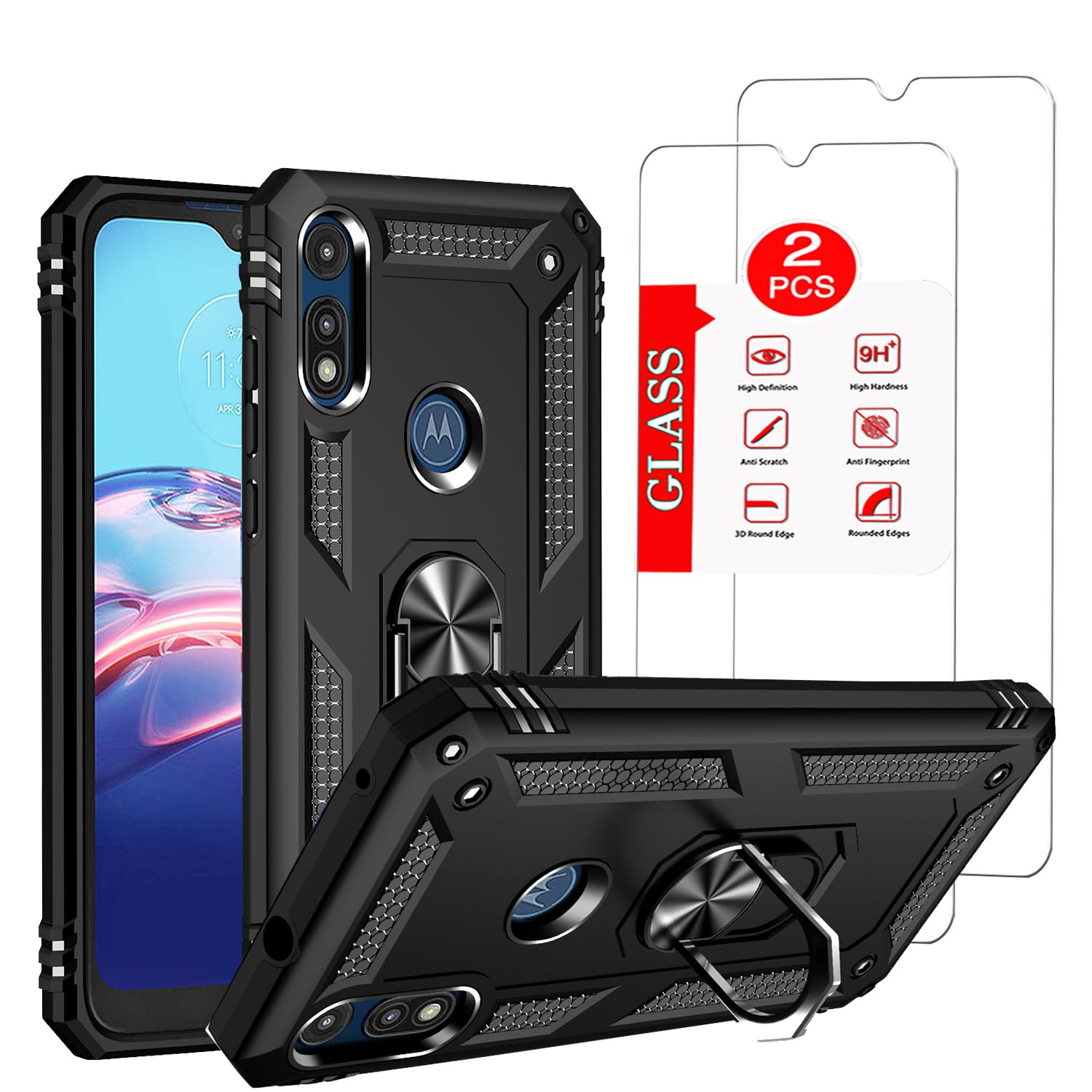 【Compatible With】Specially designed for Motorola Moto E 2020 (NOT for Any Other Model) . Also come with 2pcs tempered glass screen protectors. Please confirm your phone model before buying, Please feel free to contact us if you have any questions. 【Ugraded 360° Full Body Protection】This phone case is made of anti-scratch hard rigid PC bumper and shock resistance soft TPU, Military-Grade Protection with Air-Cushion Technology for all corners and the raised TPU bezel design, provide all around double protection of your phone from drops, scratches and bumps. 【360° Rotable Magnetic Kickstand】 Metal kickstand can rotate 360°, easy to rotate and sturdy on the case. Built in kickstand gives you the convenience to watch videos and movies hands-free with desired comfort and stability. Built-in metal magnetic sheet which can be directly adsorbed stably to the magnetic car mount holder. ( Not includes the magnetic car mount holder !) 【PRECISE CUTOUT】Raised screen edge and raised camera edge provide extra protection for your phone. All buttons and interface user-friendly design to avoid frequent disassembly. And the case perfect cutouts for speakers, camera and charging hole allow you to easy access to all features and convenient for charging your phone without take off the case. 【Tempered Glass Screen Protector】With 2 pack screen protector,HD clear scratch resistant tempered glass[9H Hardness]. No need to buy the screen protector. Compatible Phone Models : for Motorola Moto E 2020