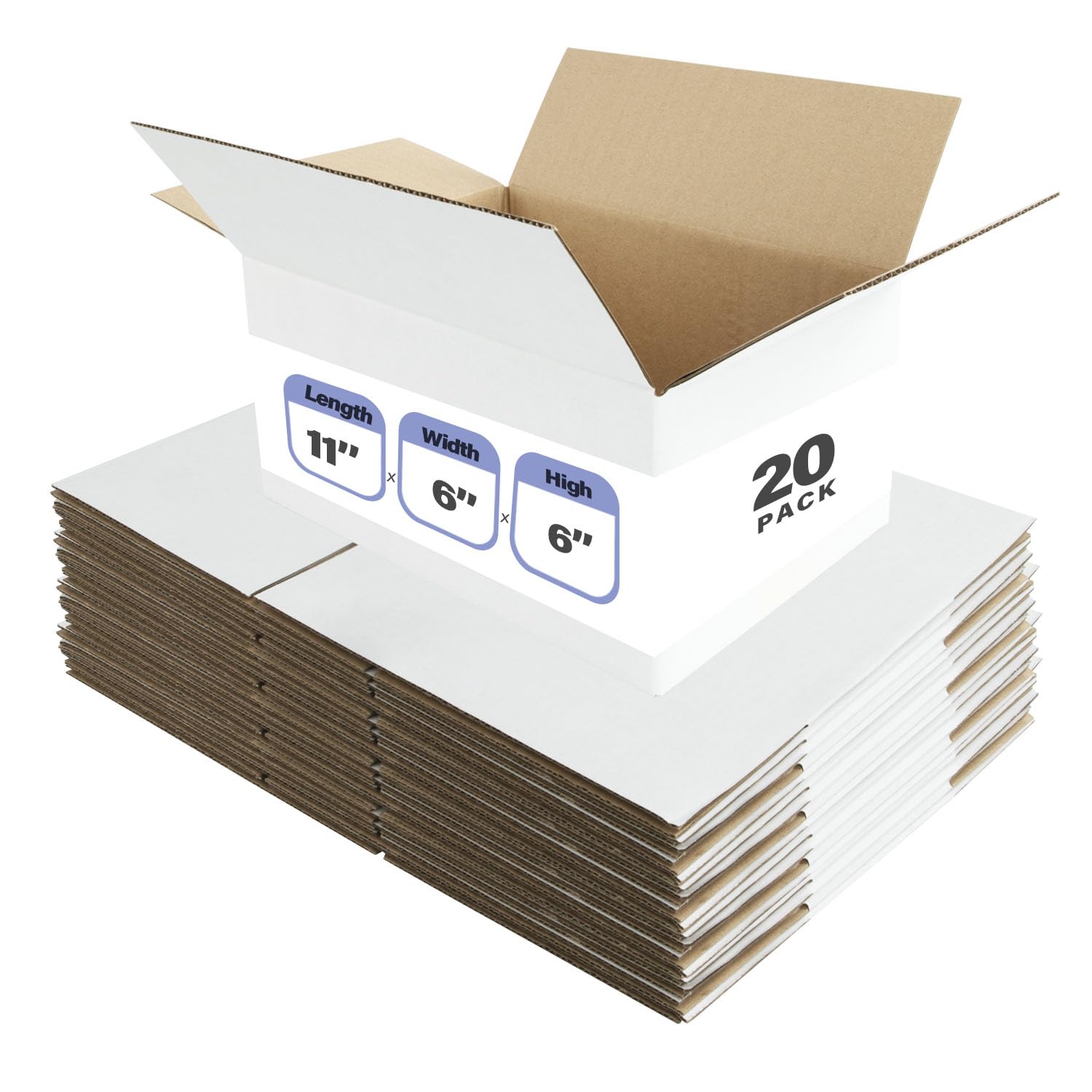 11x6x6 Inches Shipping Boxes Set of 20,White Corrugated Cardboard Box for Packing Mailing Small Business,E-Commerce, Shipping, Storing, Gifts Wrapping($21.99Value)