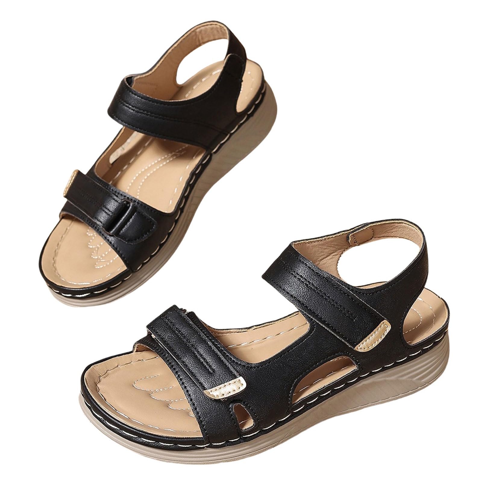 Women Comfortable Sandals Orthotic Walking Orthopedic Arch Support Dressy Casual Platform Hollow Flat Sandal Non-Slip Peep Toe Slingback Wide Width($15.99Value)