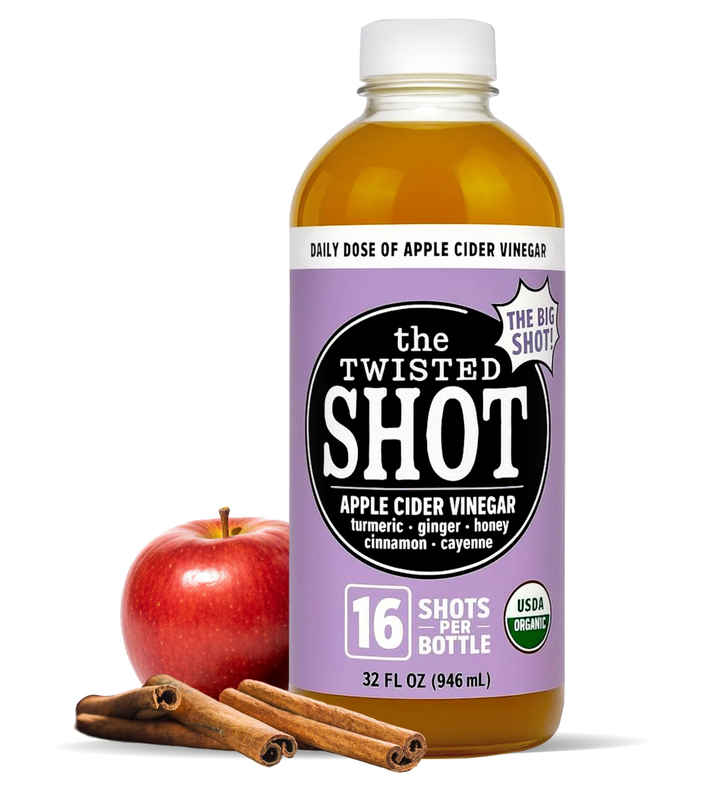 DAILY WELLNESS SUPPORT: The Twisted Shot blends organic apple cider vinegar liquid with ginger, turmeric, cinnamon, cayenne, and honey. These wellness shots provide a smooth and flavorful way to enjoy health shots as part of your everyday lifestyle. APPLE CIDER VINEGAR MOTHER: The Twisted Shot includes organic apple cider vinegar mother combined with ginger and spices for daily balance. Designed as convenient ginger shots, health shots, or immunity shot bottles, each sip is ready to enjoy anytime. CERTIFIED ORGANIC INGREDIENTS: Our wellness shots feature organic apple cider vinegar paired with honey, ginger, turmeric, and cinnamon. These health shots deliver bold flavor and simple daily support, making them an easy part of your healthy routine. REFRESHING HEALTH DRINK: Apple cider vinegar liquid doesn’t have to be difficult to enjoy. The Twisted Shot enhances wellness shots with natural sweetness and spice, creating immunity shot bottles that taste smooth, refreshing, and easy to drink. READY TO ENJOY ANYTIME: The Twisted Shot offers wellness shots that are quick, portable, and convenient. These ginger shots and immunity shot bottles are designed for everyday use, making organic apple cider vinegar simple to add into your routine. The Twisted Shot brings a refreshing and flavorful way to enjoy organic apple cider vinegar in a smooth, ready-to-drink format. Crafted with a carefully balanced blend of apple cider vinegar liquid, ginger, turmeric, cinnamon, cayenne, and honey, this premium beverage is designed to fit seamlessly into your daily lifestyle. Unlike traditional mixes that can taste harsh or require preparation, The Twisted Shot is packaged for convenience, letting you enjoy wellness shots without compromise. Each serving incorporates organic apple cider vinegar with apple cider vinegar mother, offering a natural depth and complexity that pairs perfectly with the warming spice of ginger and the subtle sweetness of honey. This thoughtful recipe has been developed to highlight flavor as much as function, ensuring that every sip feels invigorating and enjoyable. The Twisted Shot can be enjoyed straight from the bottle, chilled for a crisp finish, or integrated into your daily routine as a flavorful companion to hydration, balance, and wellness. With its versatile profile, The Twisted Shot is more than just a drink - it is a crafted experience built for modern lifestyles. Whether you prefer the bold kick of ginger shots, the smooth integration of wellness shots, or the convenience of immunity shot bottles, this organic apple cider vinegar beverage offers multiple ways to refresh your day. The unique combination of ingredients allows you to enjoy health shots that emphasize taste as much as quality, giving you an option that feels practical, delicious, and easy to incorporate into busy schedules. Each bottle has been developed to provide consistency, ensuring that the same great flavor accompanies you wherever you go. By combining certified organic ingredients with a modern approach to taste, The Twisted Shot represents a new standard for apple cider vinegar beverages. Ready to drink and made for real life, it delivers a clean, vibrant profile that stands apart. Available in a 32oz bottle.