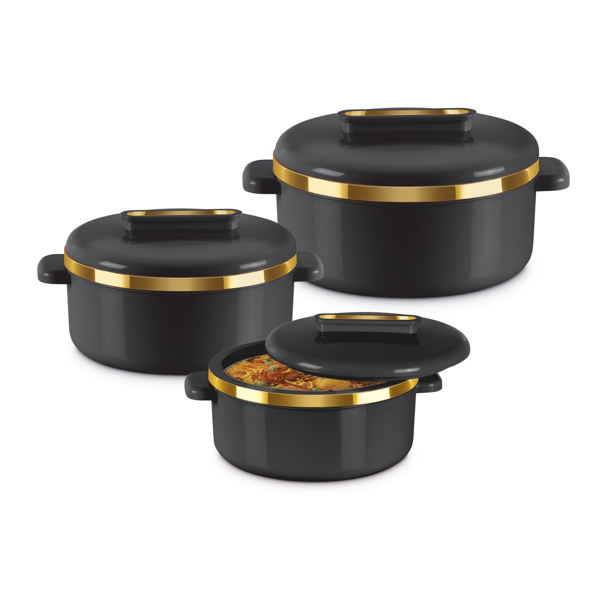 MILTON Insulated Casserole Dish with Lid 3 pc Set 2.1/1.5/1 qt. Hot Pot Food Warmer/Cooler –Thermal Soup/Salad Serving Bowl- Stainless Steel Hot Food($46.99Value)