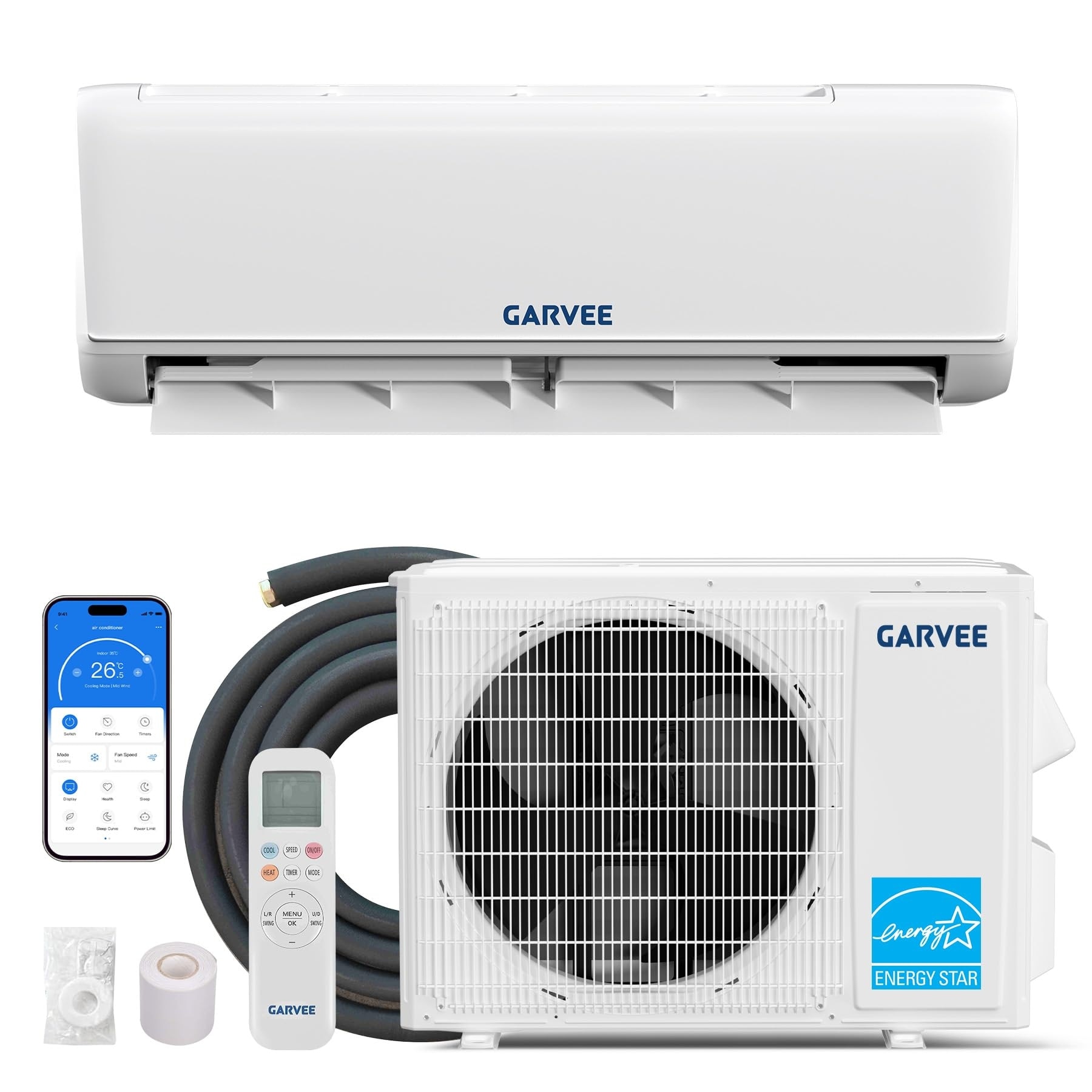 Garvee 18000 BTU 21 SEER2 Mini Split Air Conditioner with Heat Pump, WiFi Ductless AC Heater for 1050 Sq.Ft, ETL Listed
