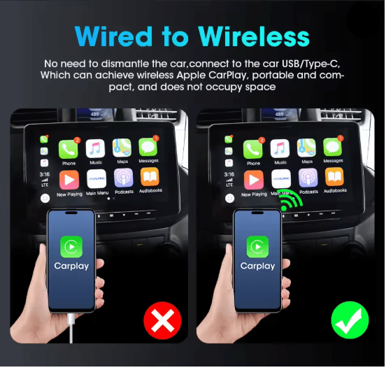 Upgrade your factory system and enjoy a cleaner, smarter drive without replacing your screen. This wireless CarPlay adapter converts wired CarPlay into a fast, cablefree experience in seconds. Designed for modern drivers, it connects automatically...