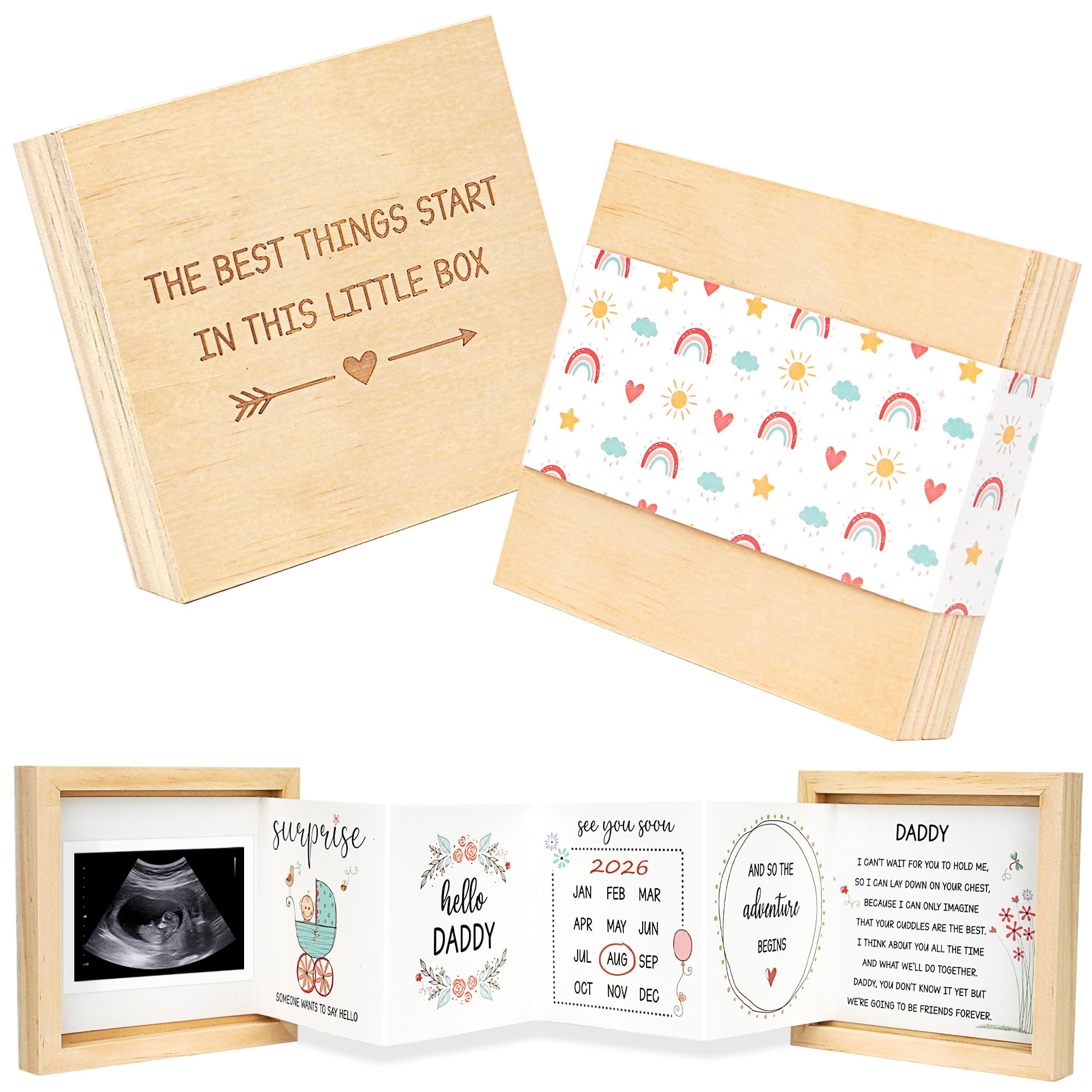 Pregnancy Announcement for Dad, Baby Announcement Ideas- Baby Sonogram Picture Keepsake Wooden Box- Hello Daddy Pregnancy Reveal to Husband, New Dad