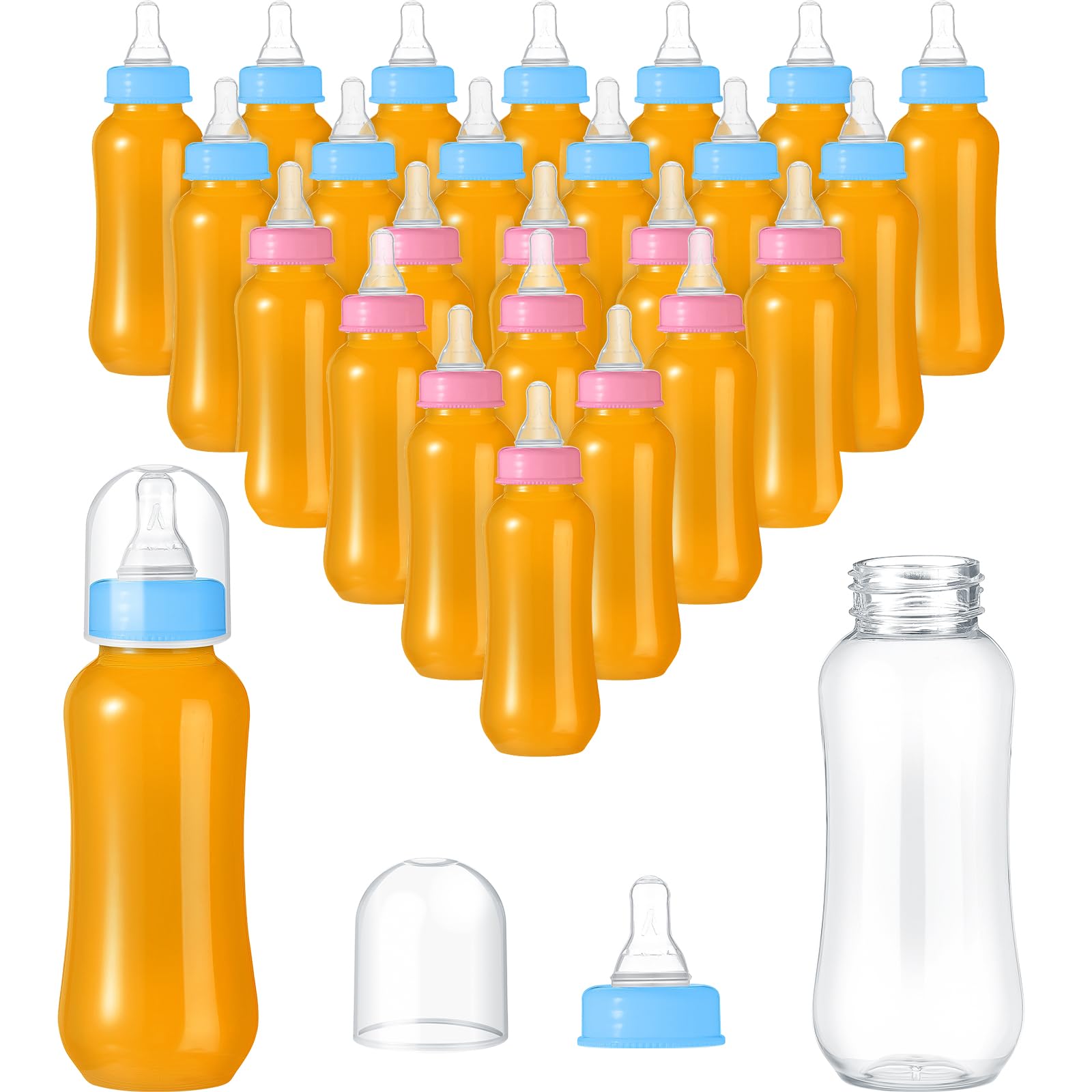 Baby Shower Supplies: you will receive 24 pieces baby bottles party favors in the package; Rich quantity is adequate for you to hold various beverages at baby showers or baby themed birthdays, easily meeting your use and decorative needs Size Information: the baby shower bottles have a capacity of 9