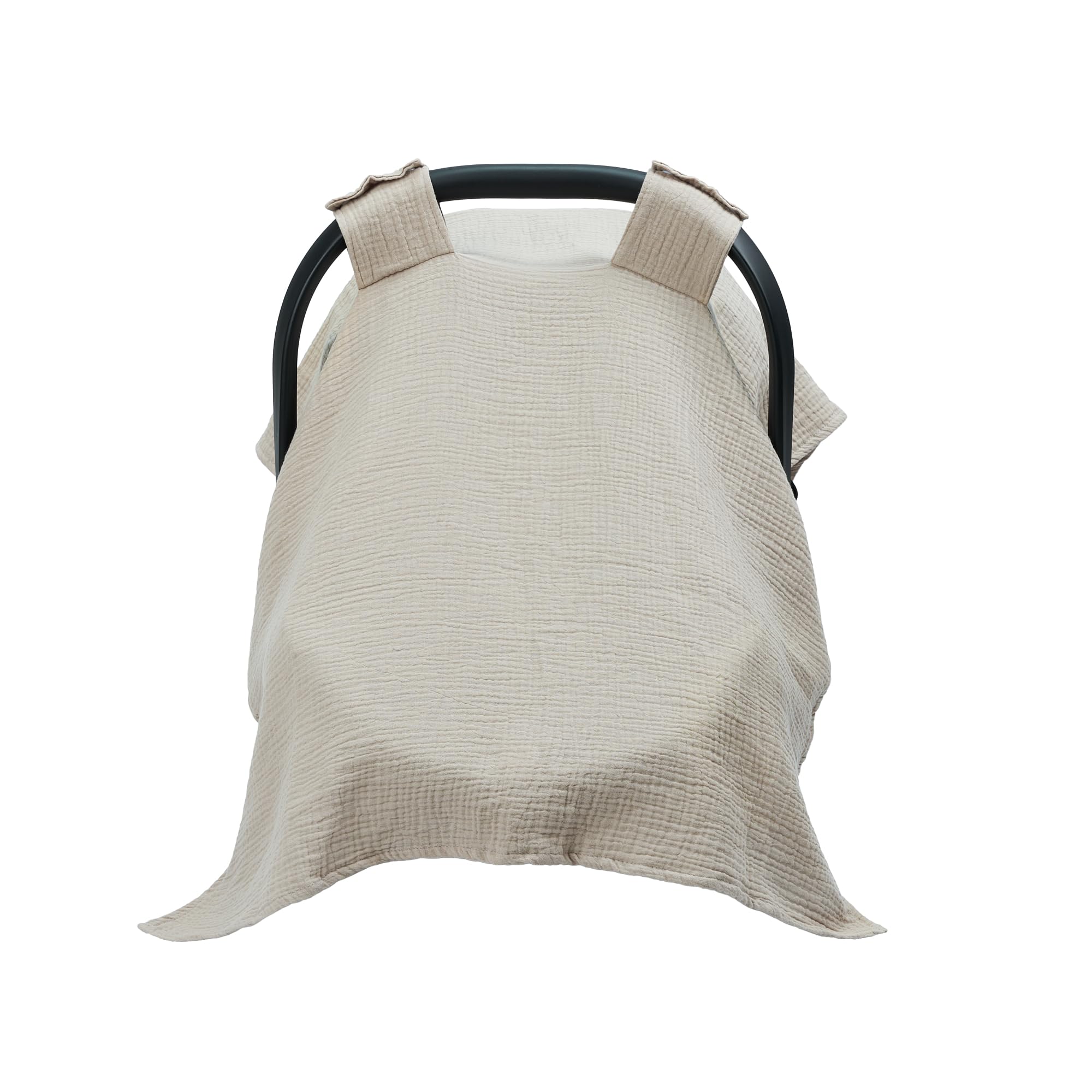 Meracorallo Muslin Baby Car Seat Cover, 100% Cotton Infant Carrier Cover, Lightweight Breathable Soft Carseat Canopy for Baby Boys and Girls (Beige)