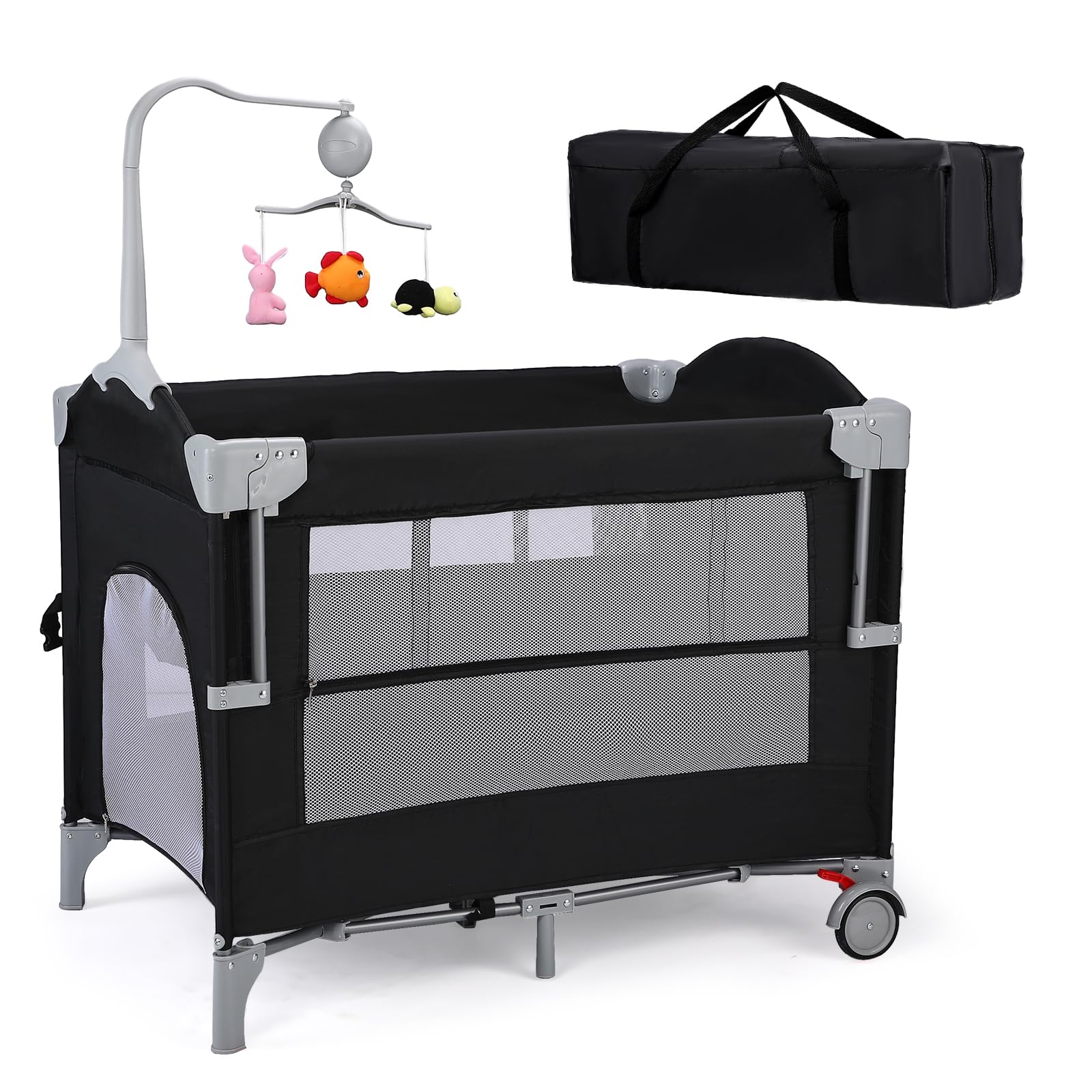 Versatile & Multi-Purpose Design: This Pack and Play with Bassinet serves as a portable crib, playard, and bedside bassinet, making it perfect for infants and toddlers. It includes a removable bassinet for newborns (up to 15-20 lbs) and converts to a spacious playard as your baby grows. Ideal for tr