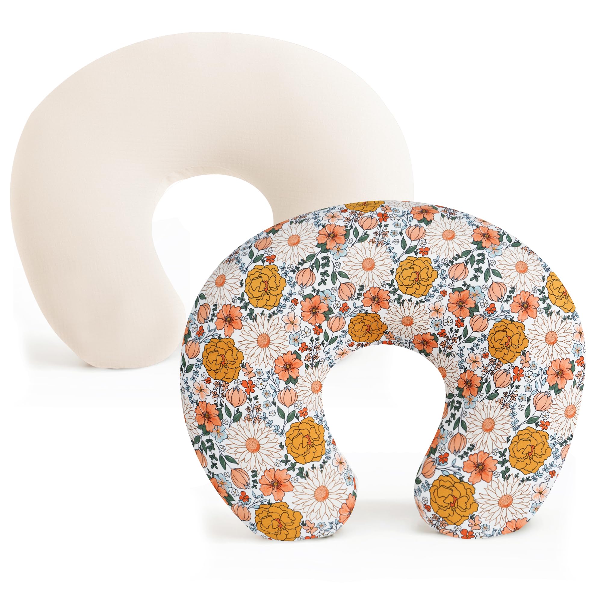 Konssy 2 Pack Nursing Pillow Covers, Stretchy and Soft Nursing Cover for Breastfeeding, Pillow Slipcover for Baby Girls Boys Newborn (Beige, Floral)
