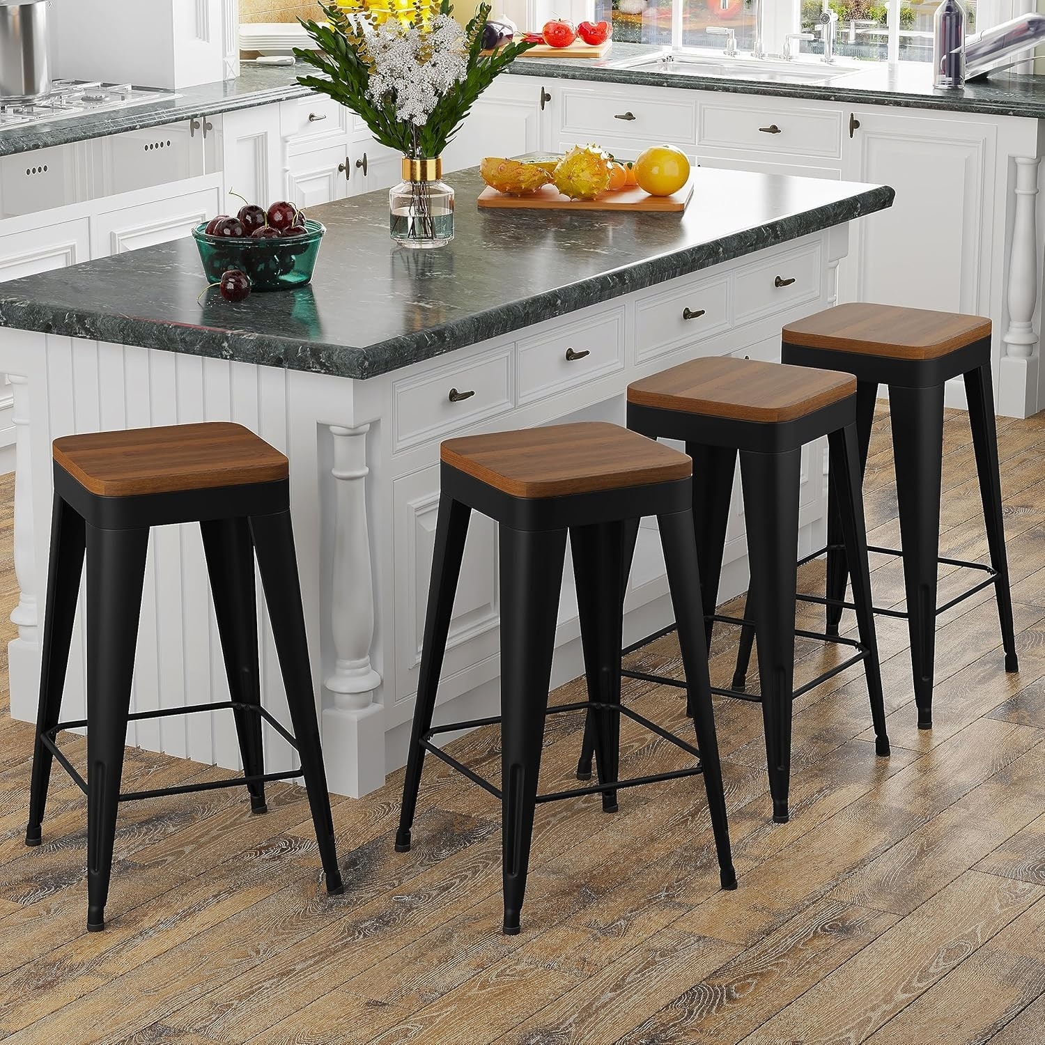 Counter & Bar Stools with Metal Frame Kitchen Stools Backless Kitchen Bar Furniture Stools with Square Wooden Seat