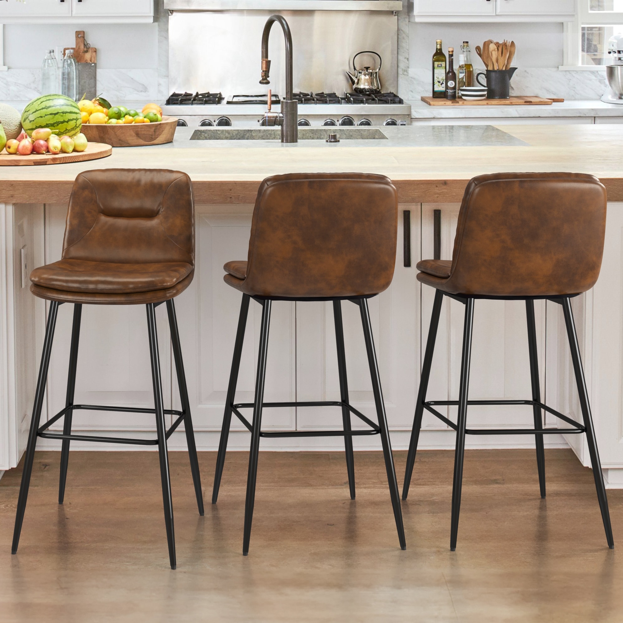 LUE BONA Indoor Bar Stools, Double-Layer Faux Leather Upholstered Counter Height Bar Stools with Back and Footrest Set of 3