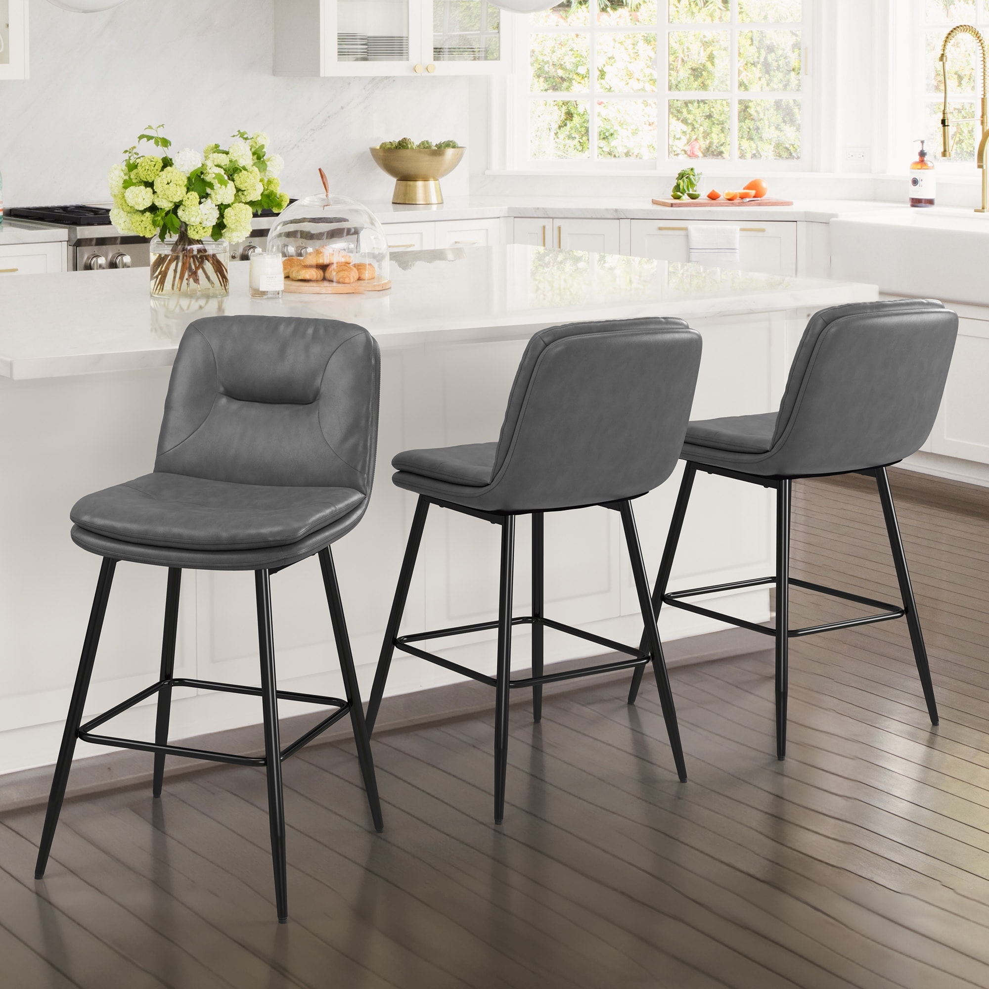 Details: This set of counter & bar stools combines sleek materials with a comfortably supportive design—ideal for kitchen islands or breakfast bars.