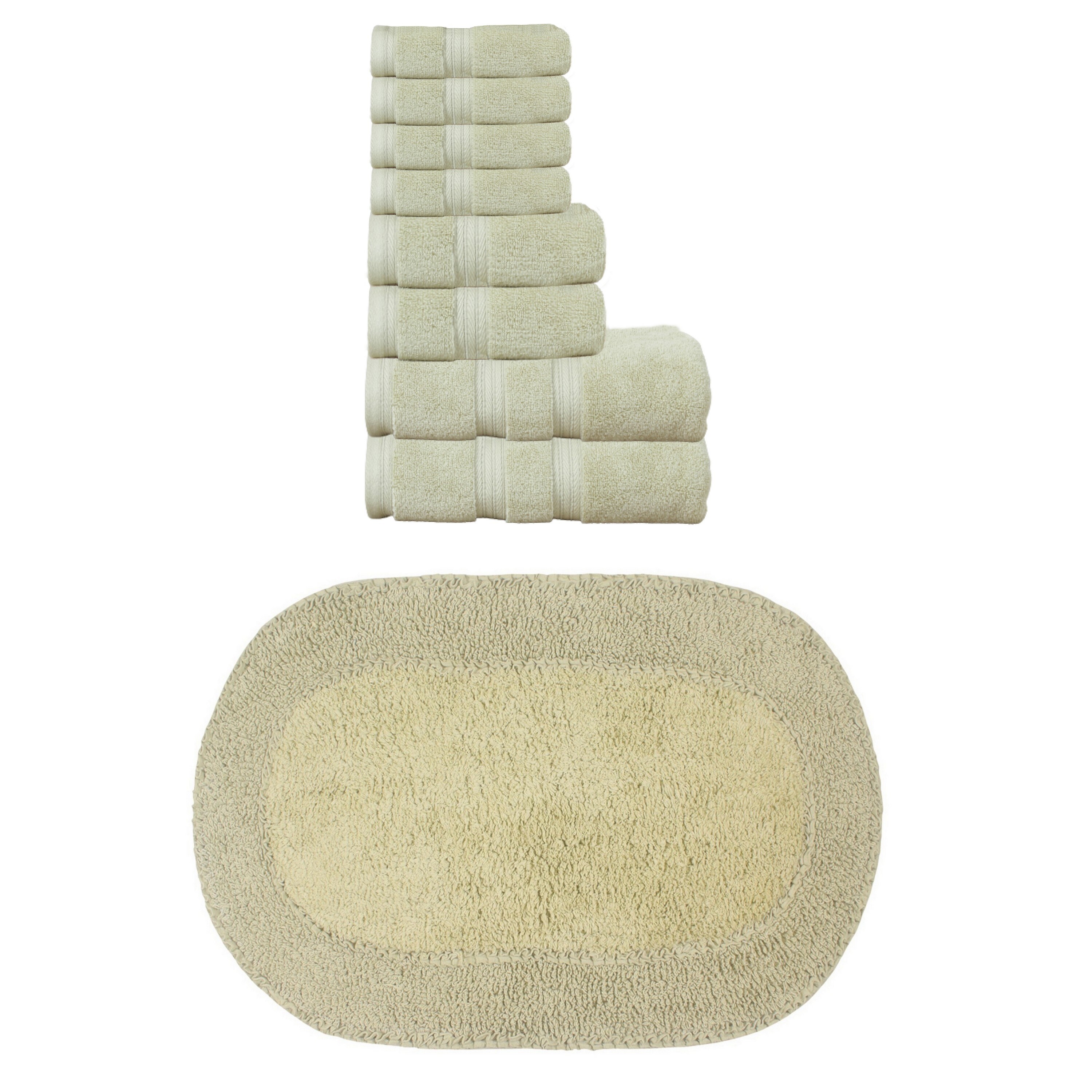 Home Weavers Allure Collection 100% Soft Cotton 8 Pc Bath Towel Set & 1 Pc 17x24 Bath Rug, Machine Washable & Non Slip(Set of 9)