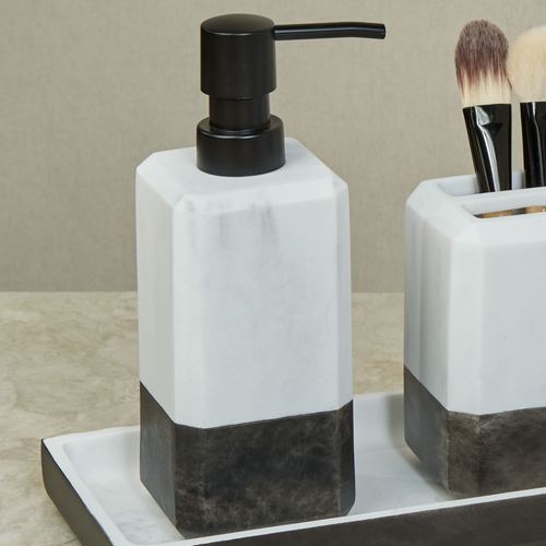 The Marquina Bath Accessories set combines the luxurious appeal of black marble with subtle white veining, creating a sophisticated addition to your bathroom decor.
