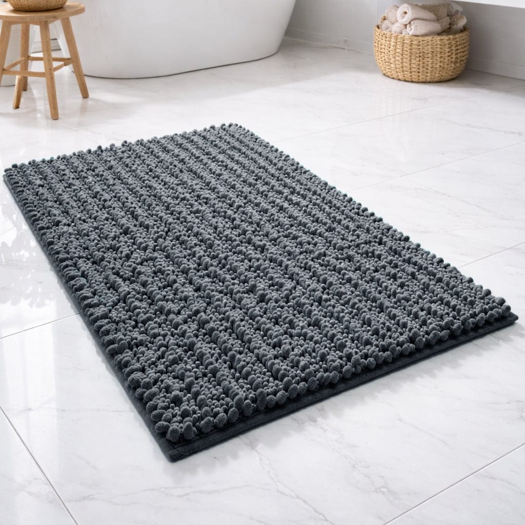 24"x16" - Dark Grey Soft Cozy Plush Chenille Bath Mat Bathroom Rug