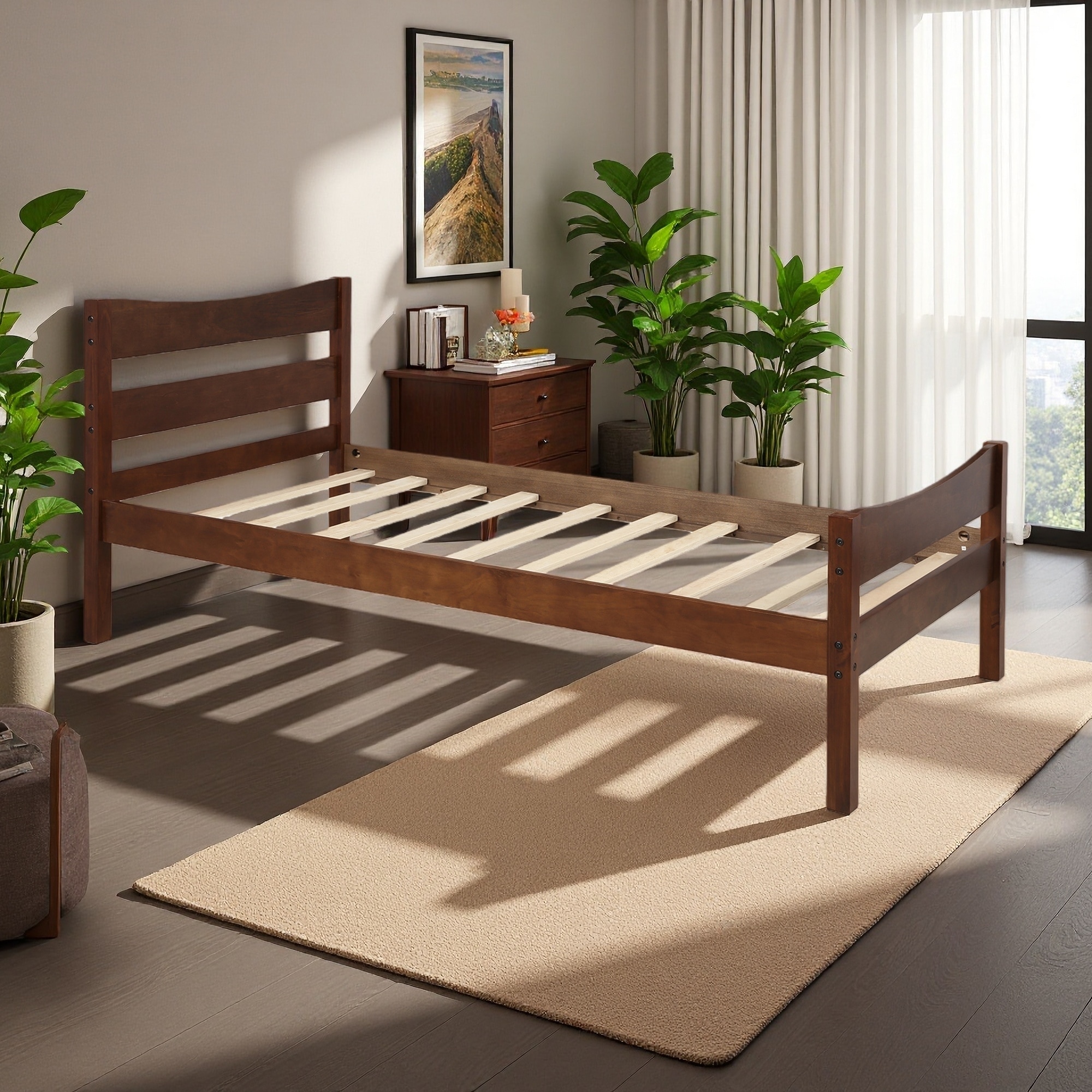 This Twin Size Wood Platform Bed with Headboard and Wooden Slat Support is a perfect blend of style and functionality.