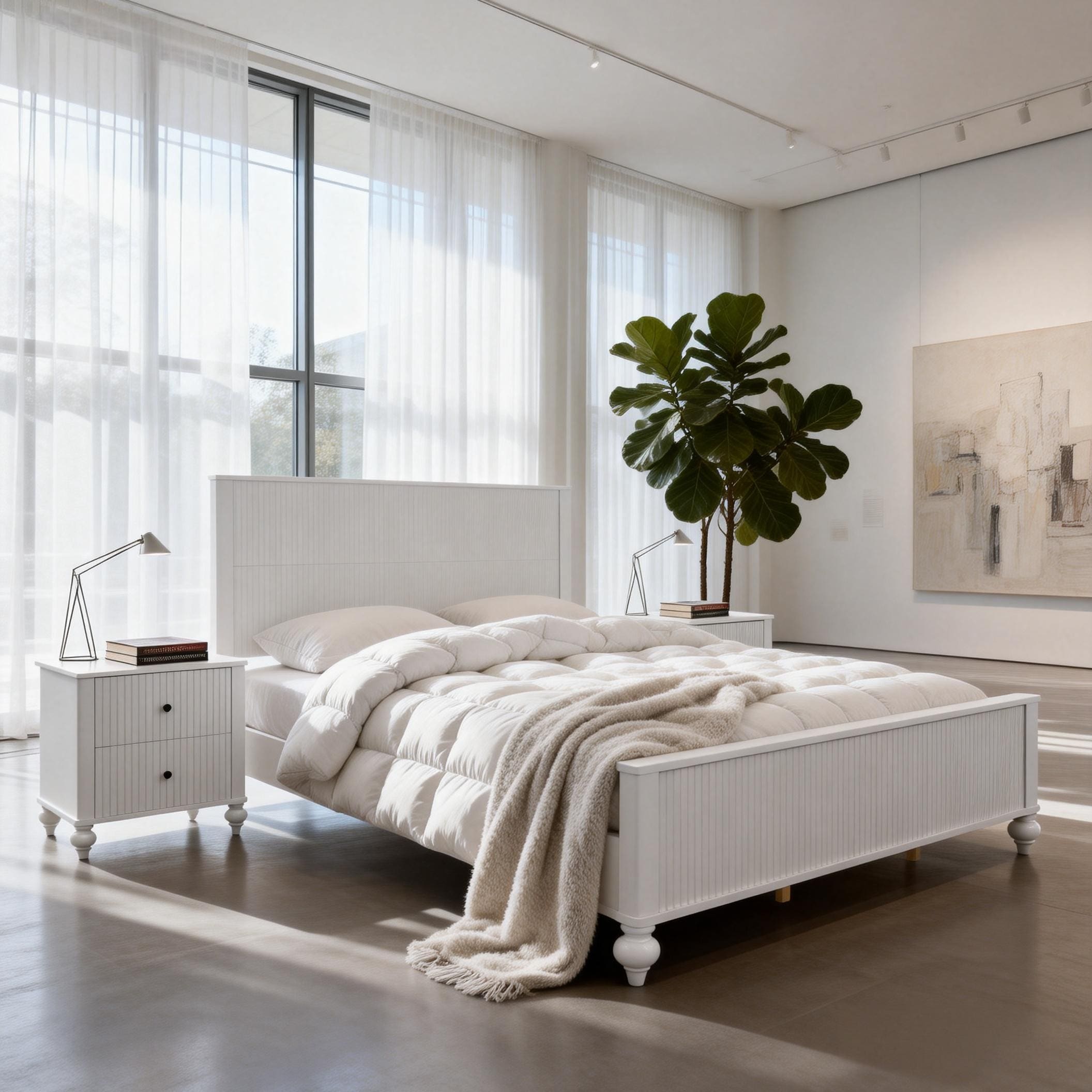 White Queen Bed with Transitional Style, Crisp Finish and Spacious Frame for Comfortable Bedroom Retreats and Decor