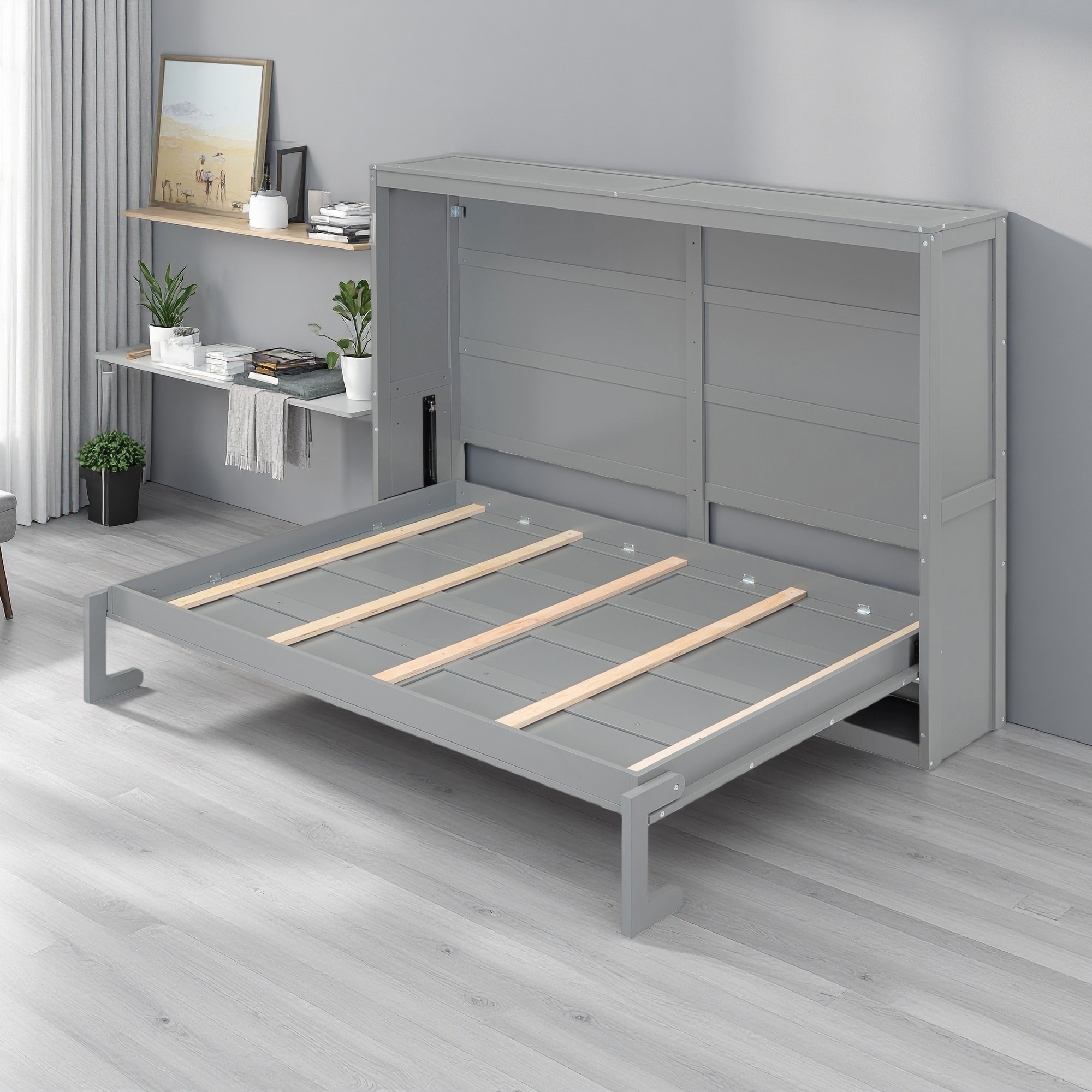 Full Plywood Murphy Bed with Flexible Slats & Foldable Cabinet Design