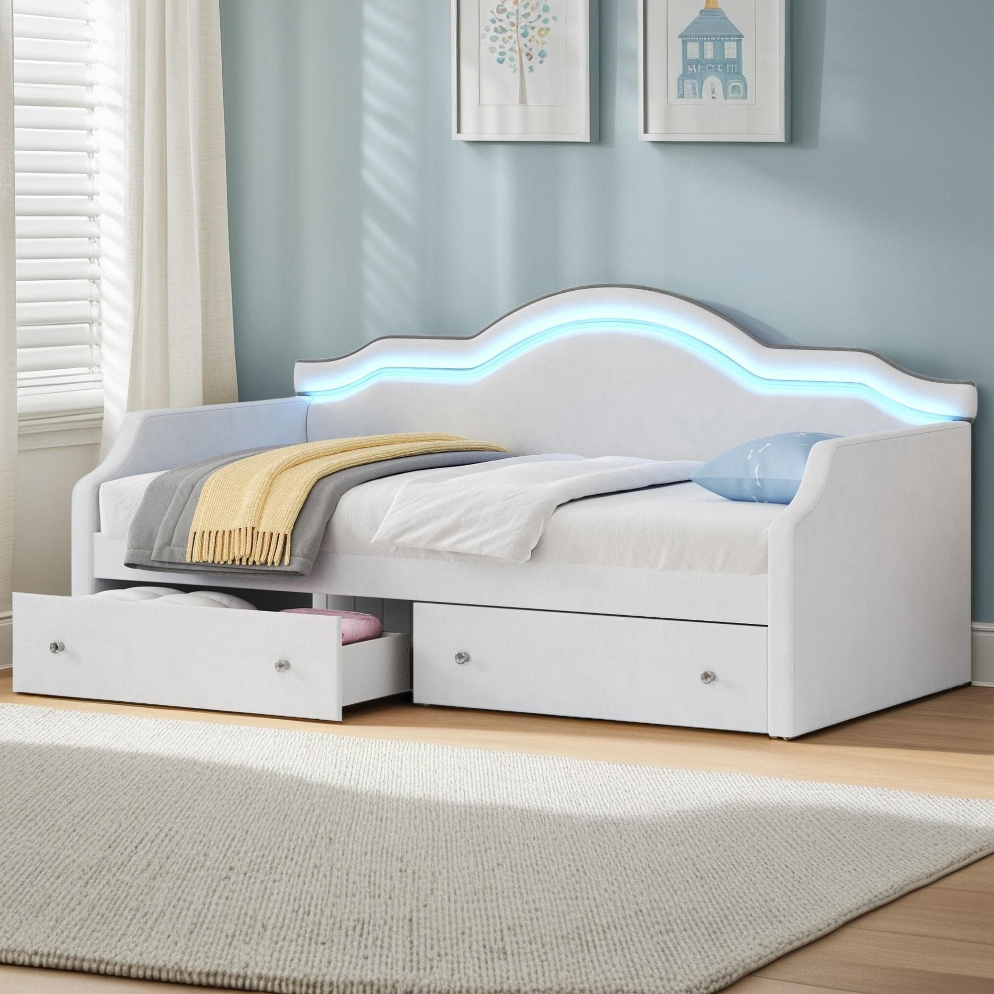 Velvet Upholstered Daybed with Color-Changing LED Light & Dual Drawers by Harper&Bright Designs