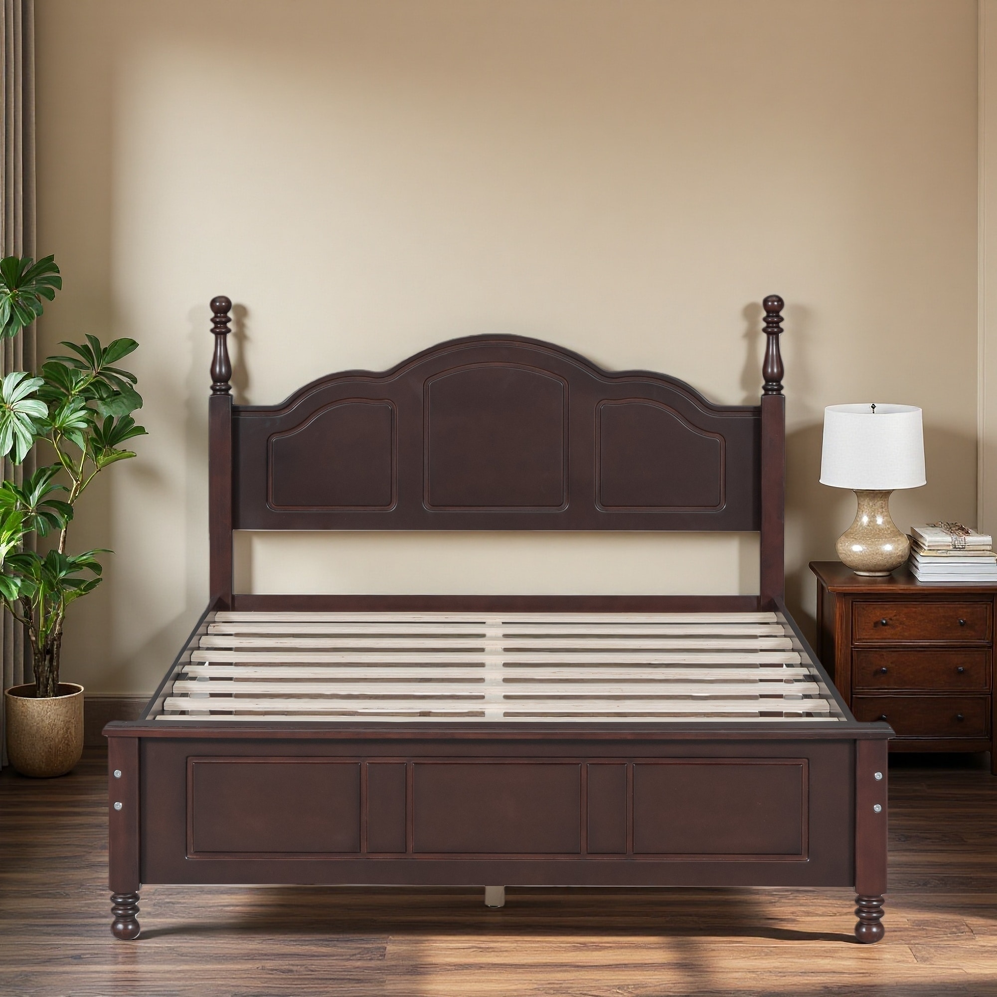 Full Size Wood Platform Bed Frame, Retro Style with Wooden Slat Support, No Box Spring Required