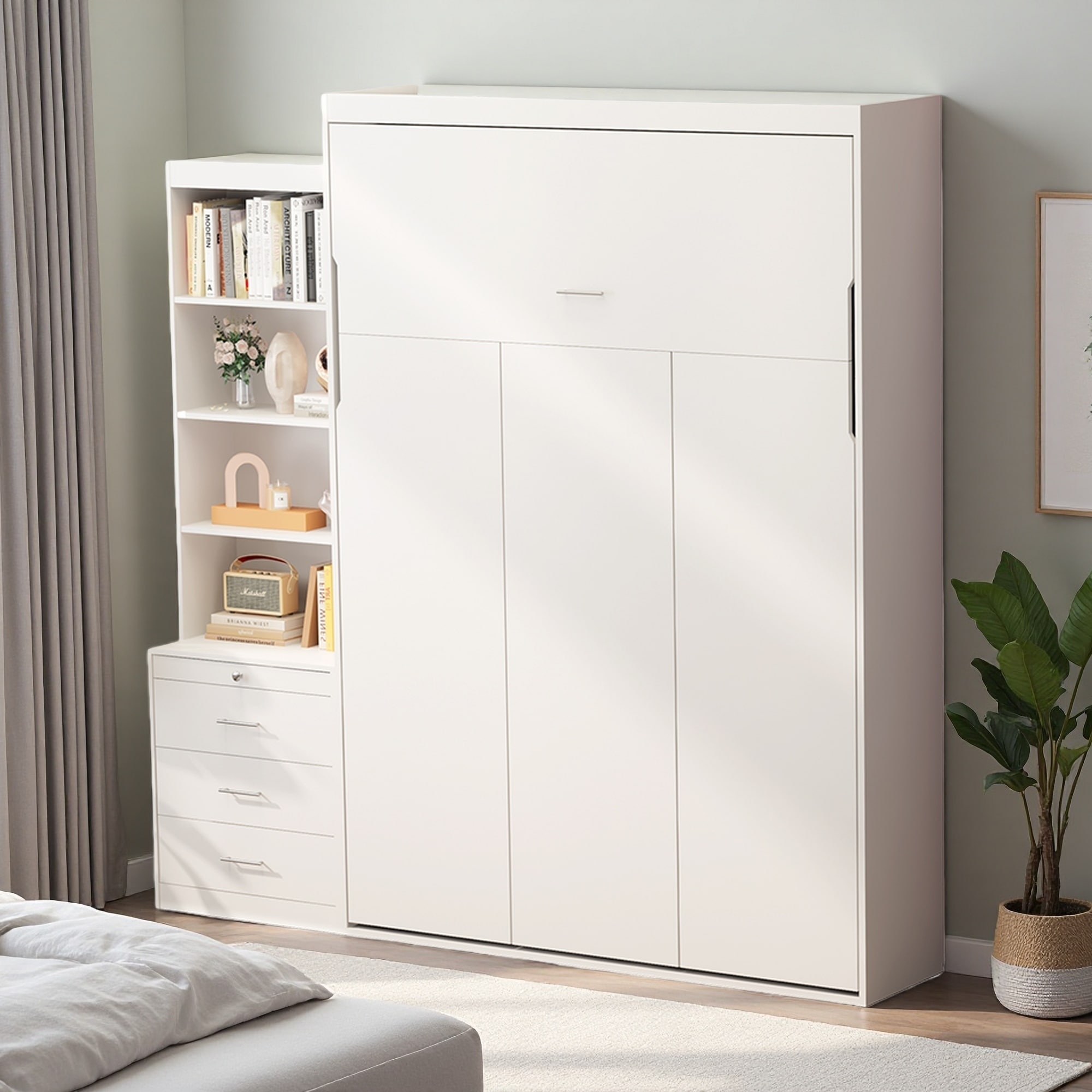 Full Vertical Murphy Bed, Shelf & Drawers, Space-Saving, Gas Struts, Bedroom/Guestroom