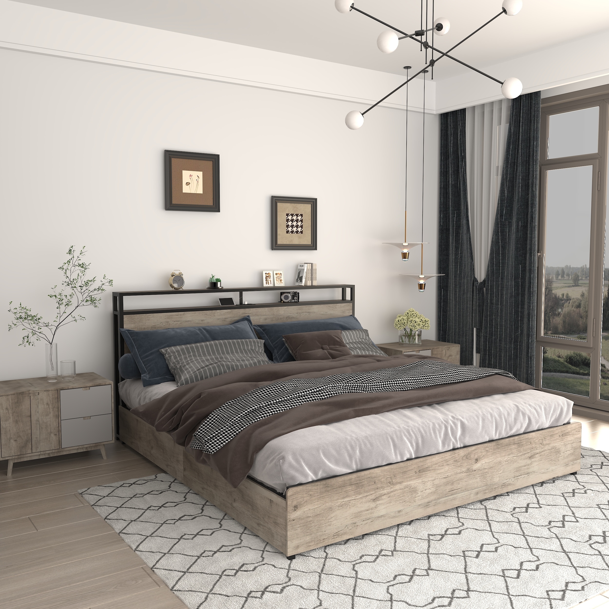 --Smart Storage: The queen bed frame with innovative storage headboard provides plenty of space for books, pads, and personal items, keeping your essentials within reach while maintaining a tidy appearance.