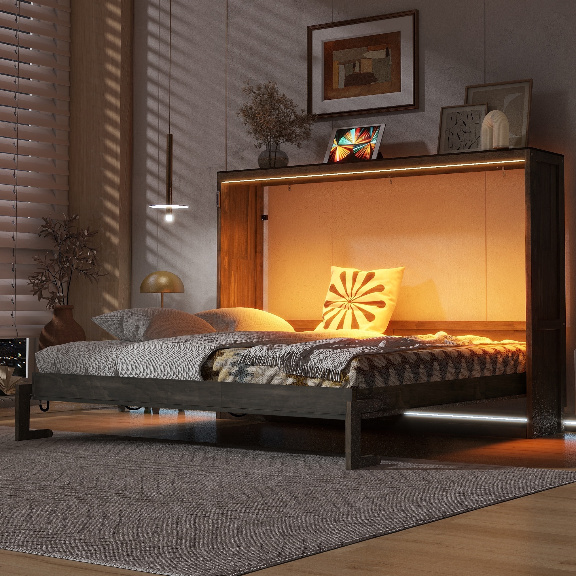 Queen Size Murphy Bed with Shelves, Drawers, USB Ports