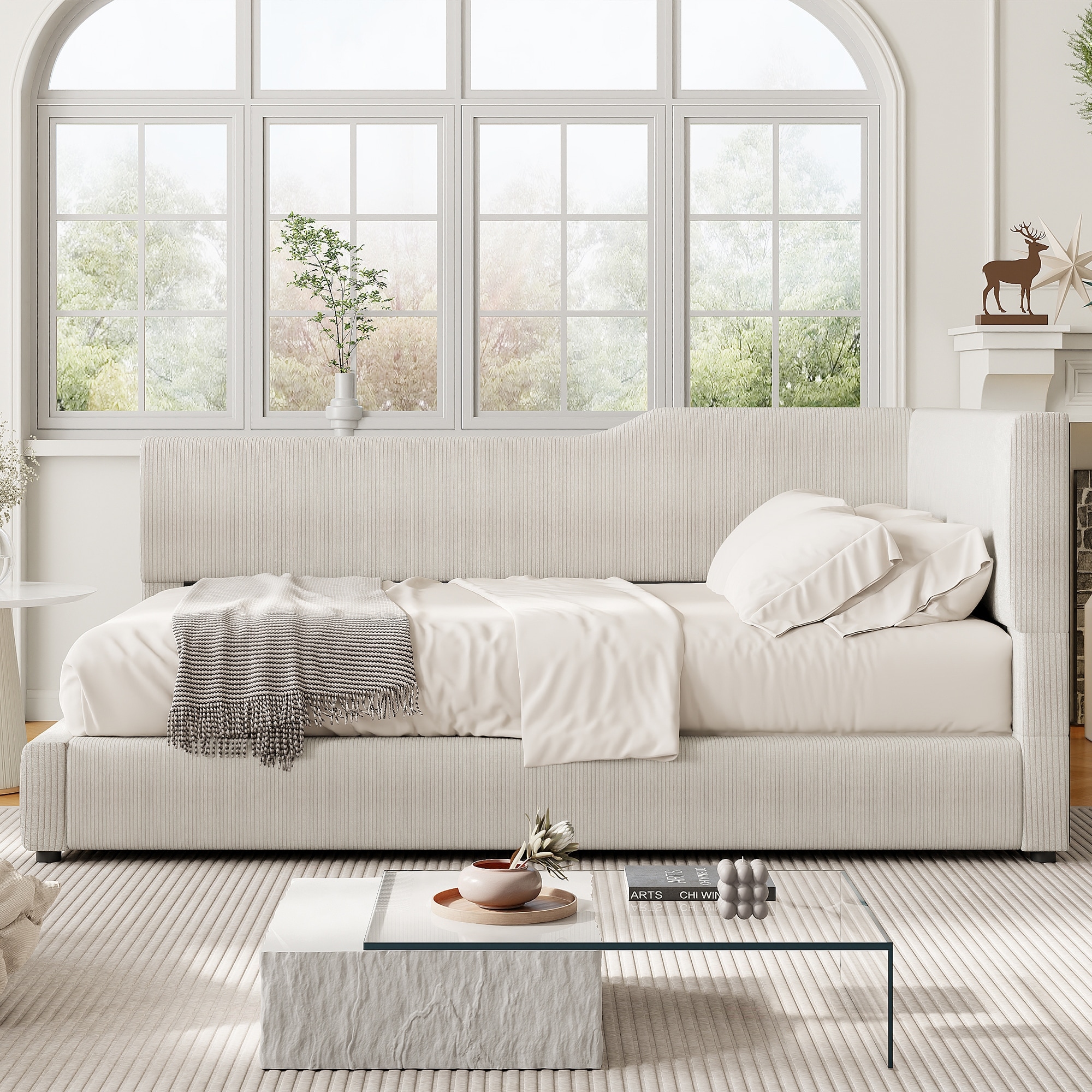 L-Shaped Corduroy Daybed Upholstered Daybed