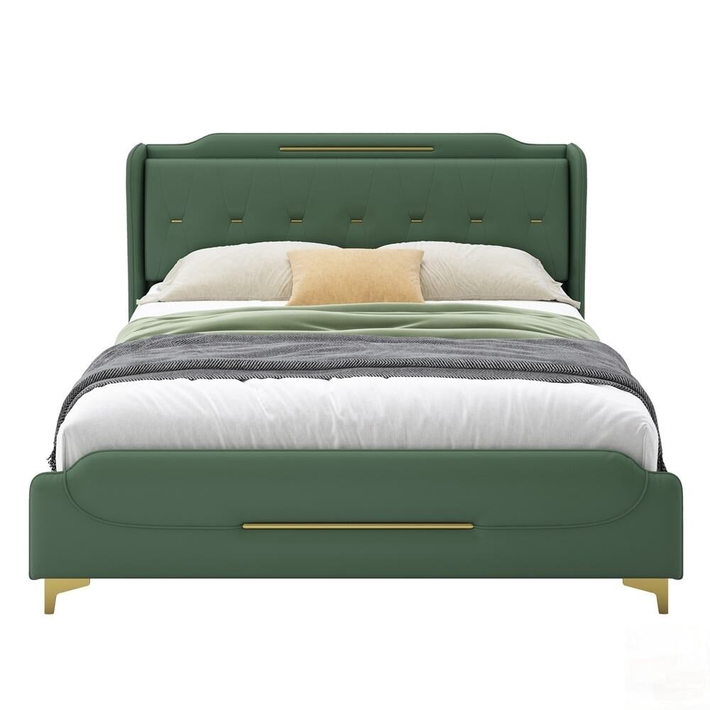Product Features Luxurious and Modern: Decorated with fancy gold metal on the headboard and bed legs, this leather upholstered platform bed has a perfect combination of modernness and luxury.