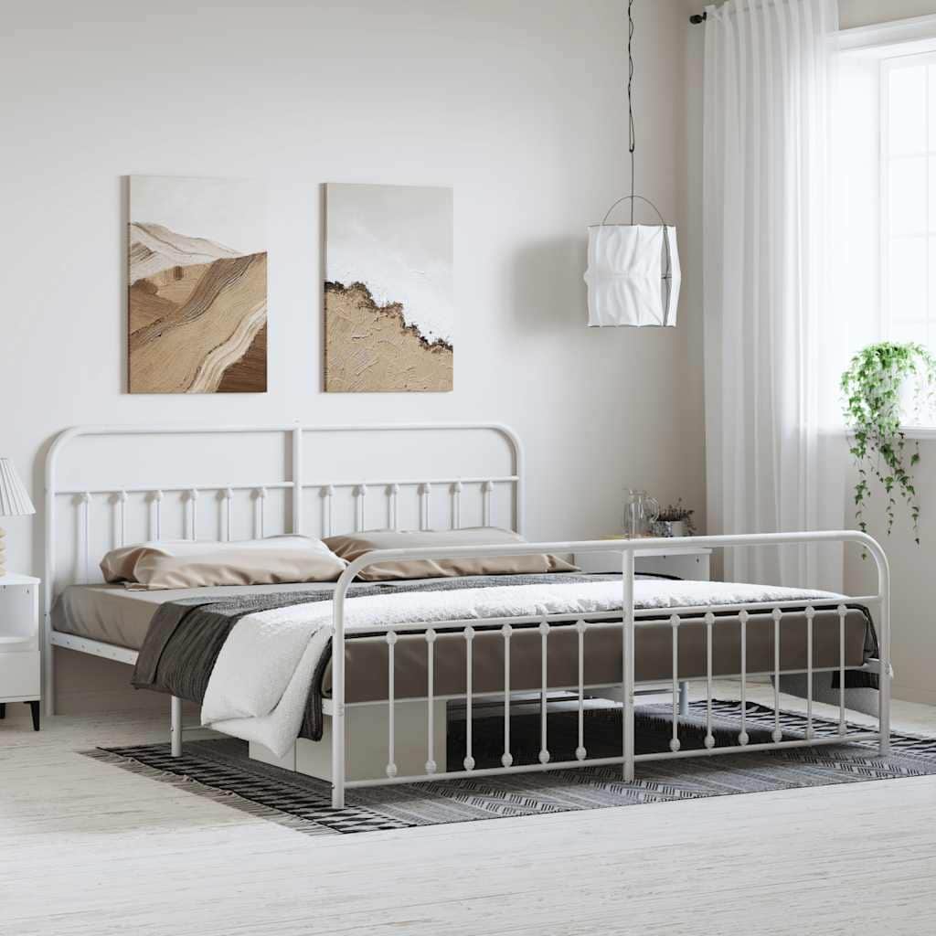 vidaXL Metal Bed Frame with Headboard, No Mattress