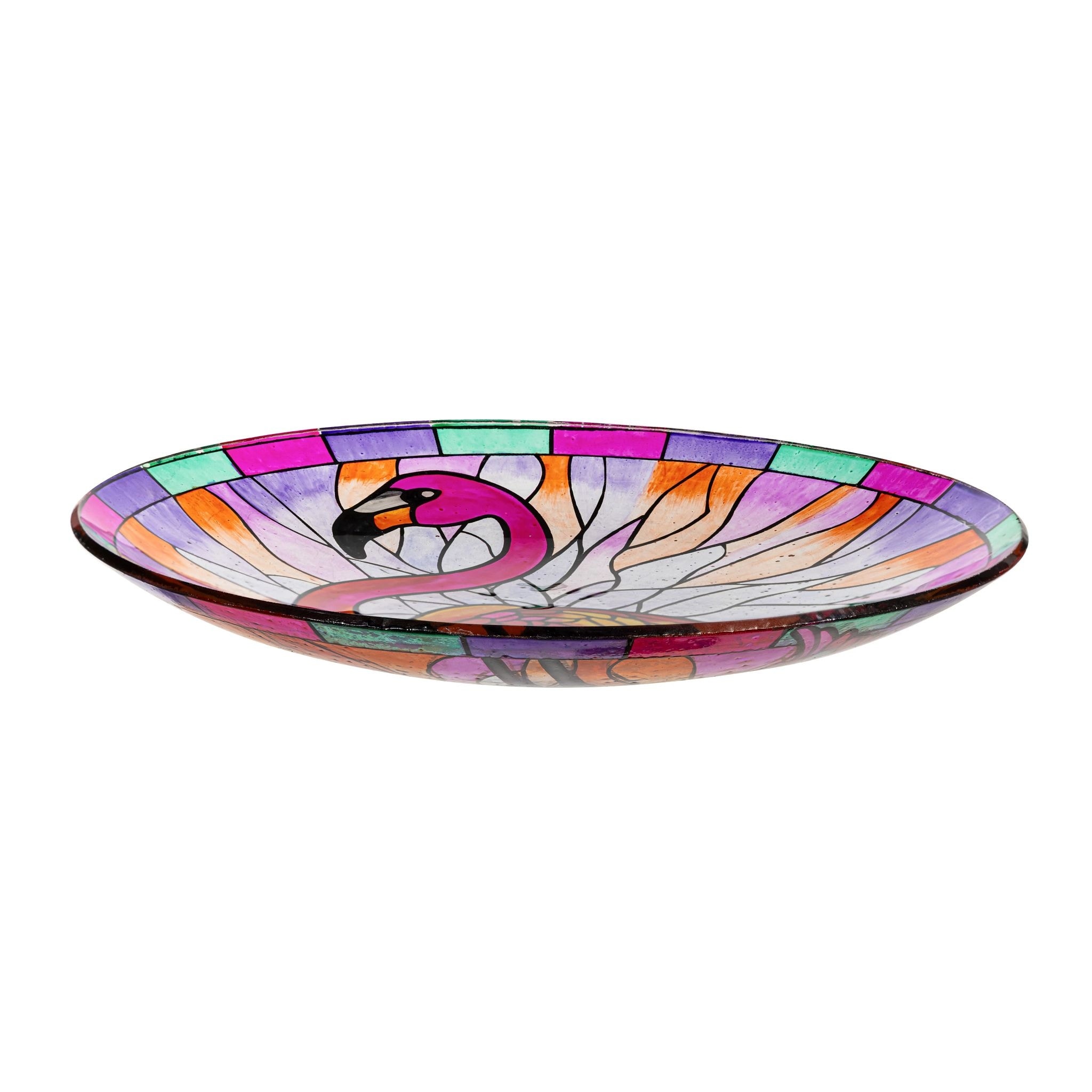 18 in. Flamingo Stained Glass Birdbath