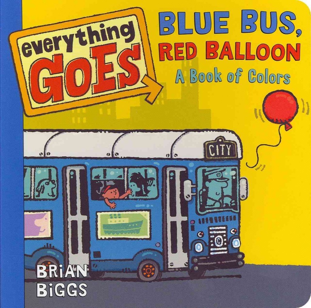 Kids will have fun learning their colors with the board book Everything Goes: Blue Bus, Red Balloon: A Book of Colors by Brian Biggs. Brian Biggs combines all kinds of vehicles—flying, rolling, floating—with the colors of the rainbow in Blue Bus, Red Balloon. Children will love discoverin