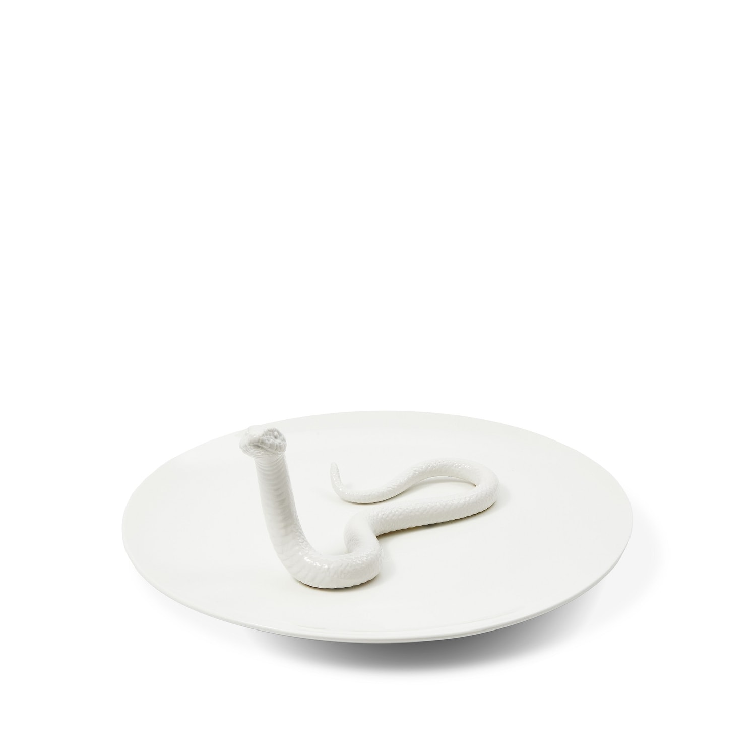 The Plate Snake White features a unique serpentine design that adds an artistic edge to any table setting. Its crisp white finish highlights the intricate curves and details, creating a modern yet elegant look.