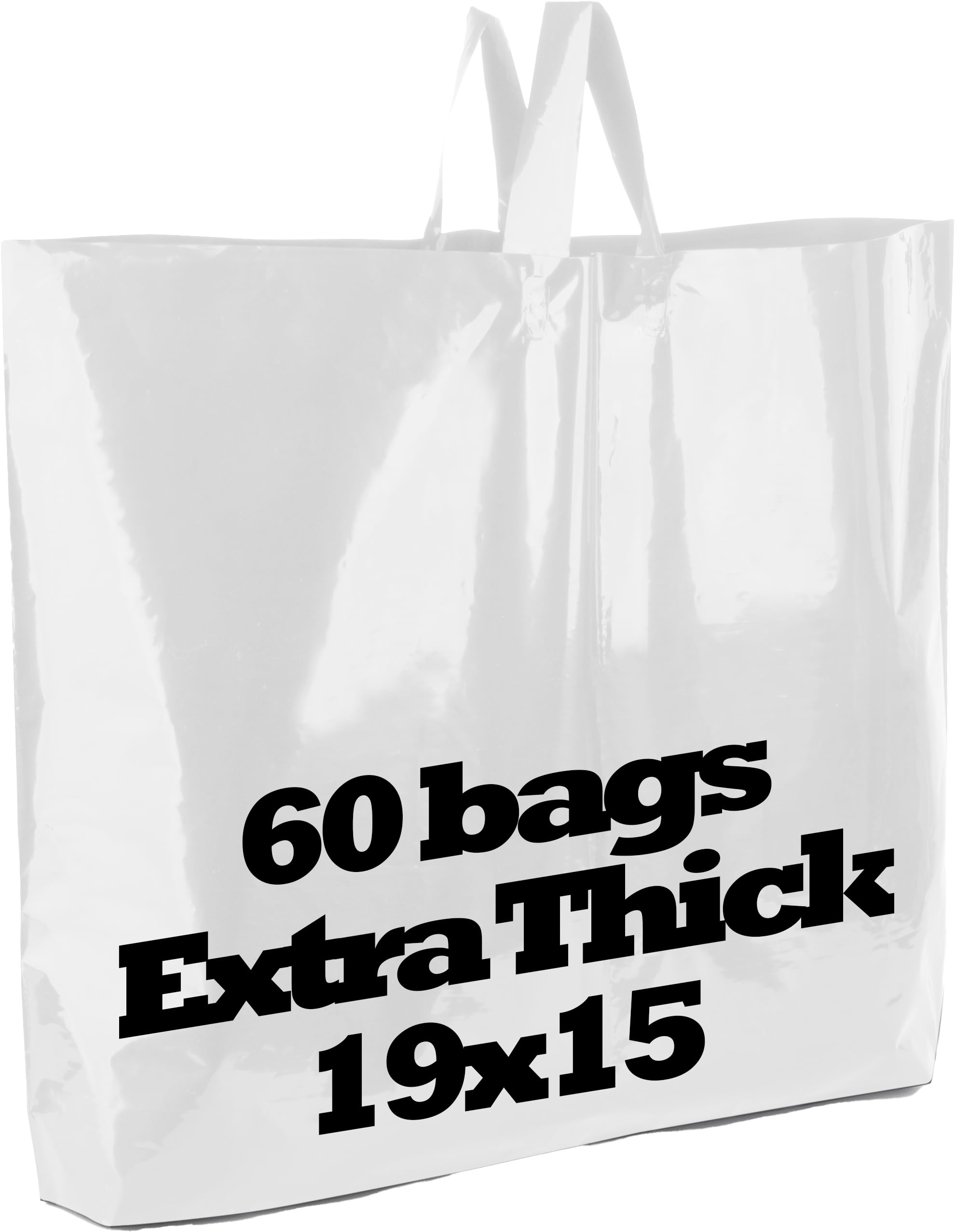Camtoms 19x15 Large Plastic Shopping Bags with Handles - 3 Mil Thick Heavy Duty White Merchandise Bags for Small Business, Boutique & Retail - Glossy