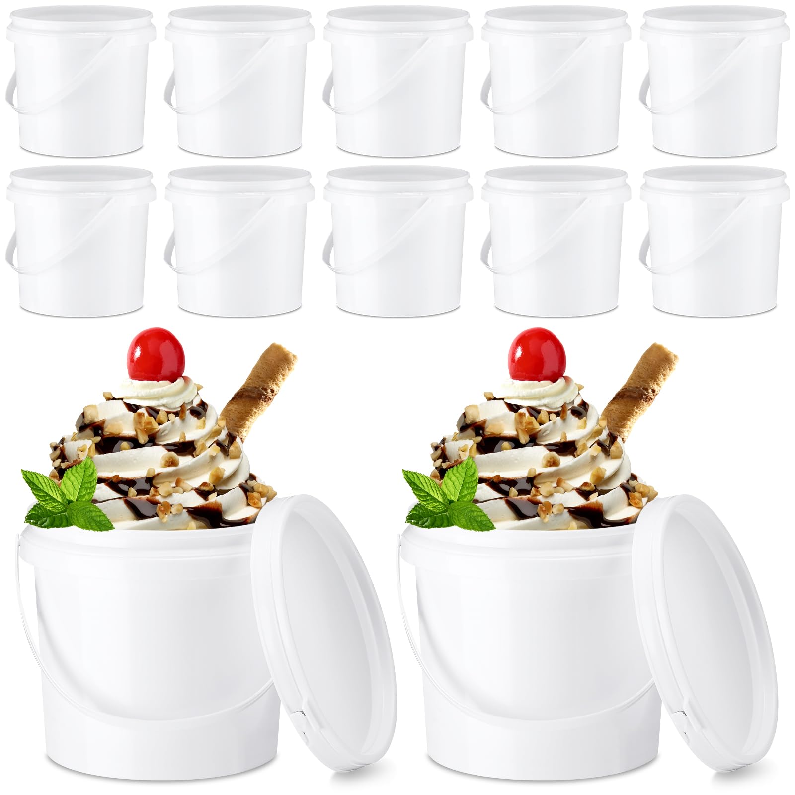 Uiifan 10 Pieces 0.5 Gallon 2 L Ice Cream Buckets with Lids Containers for Homemade Ice Cream Tub Round Plastic Bucket with Handle Food Storage