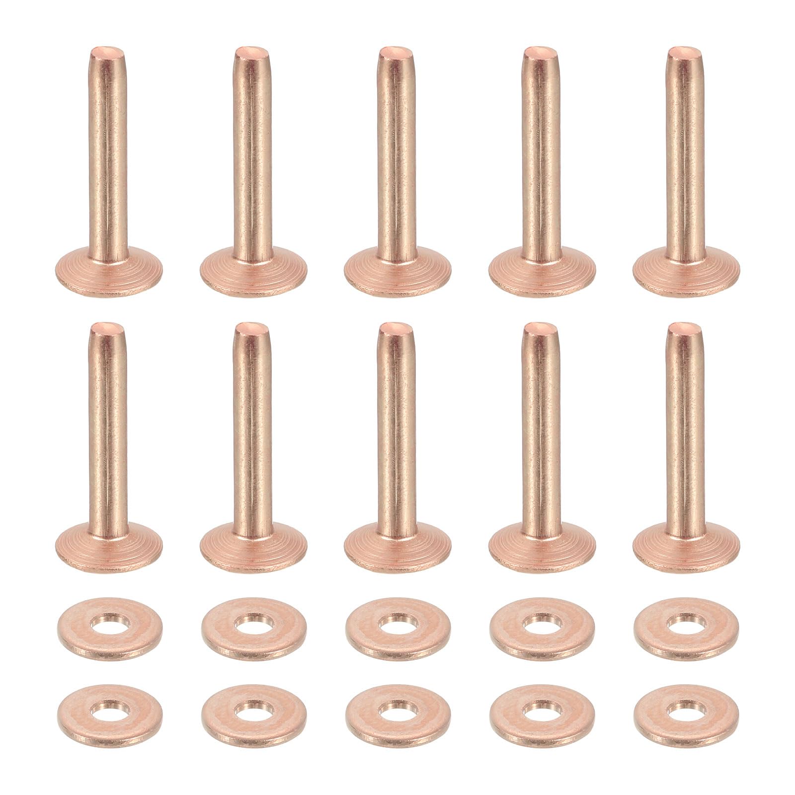 uxcell 25pcs Copper Rivets & Burrs, 9x3.3x19mm, Leathercraft Rivets, Copper Tone