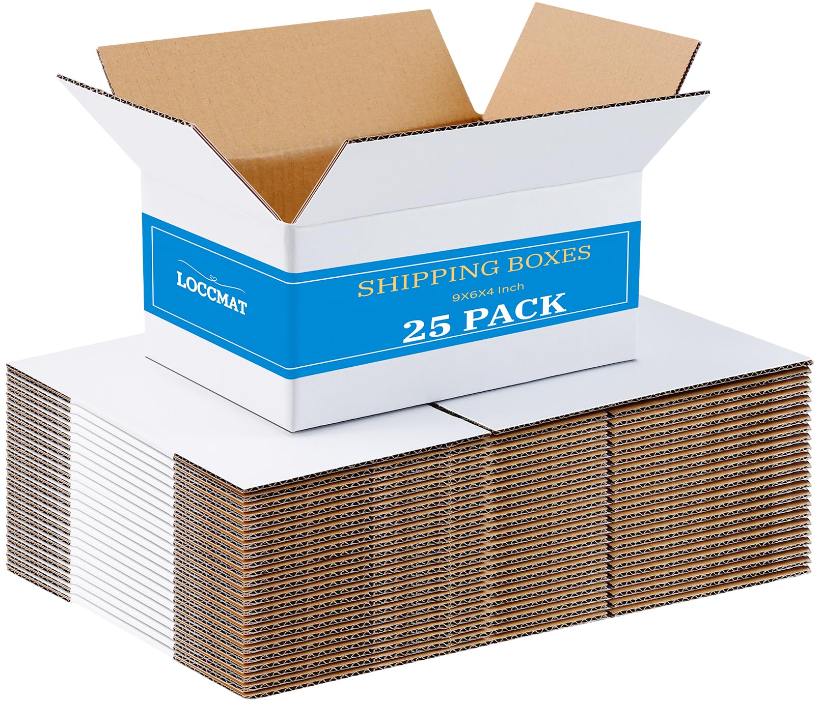 Loccmat 9x6x4 Shipping Boxes,25 Pack White Corrugated Cardboard Boxes,Small Shipping Box,Kraft Mailing Box for Small Business Packaging Mailing And