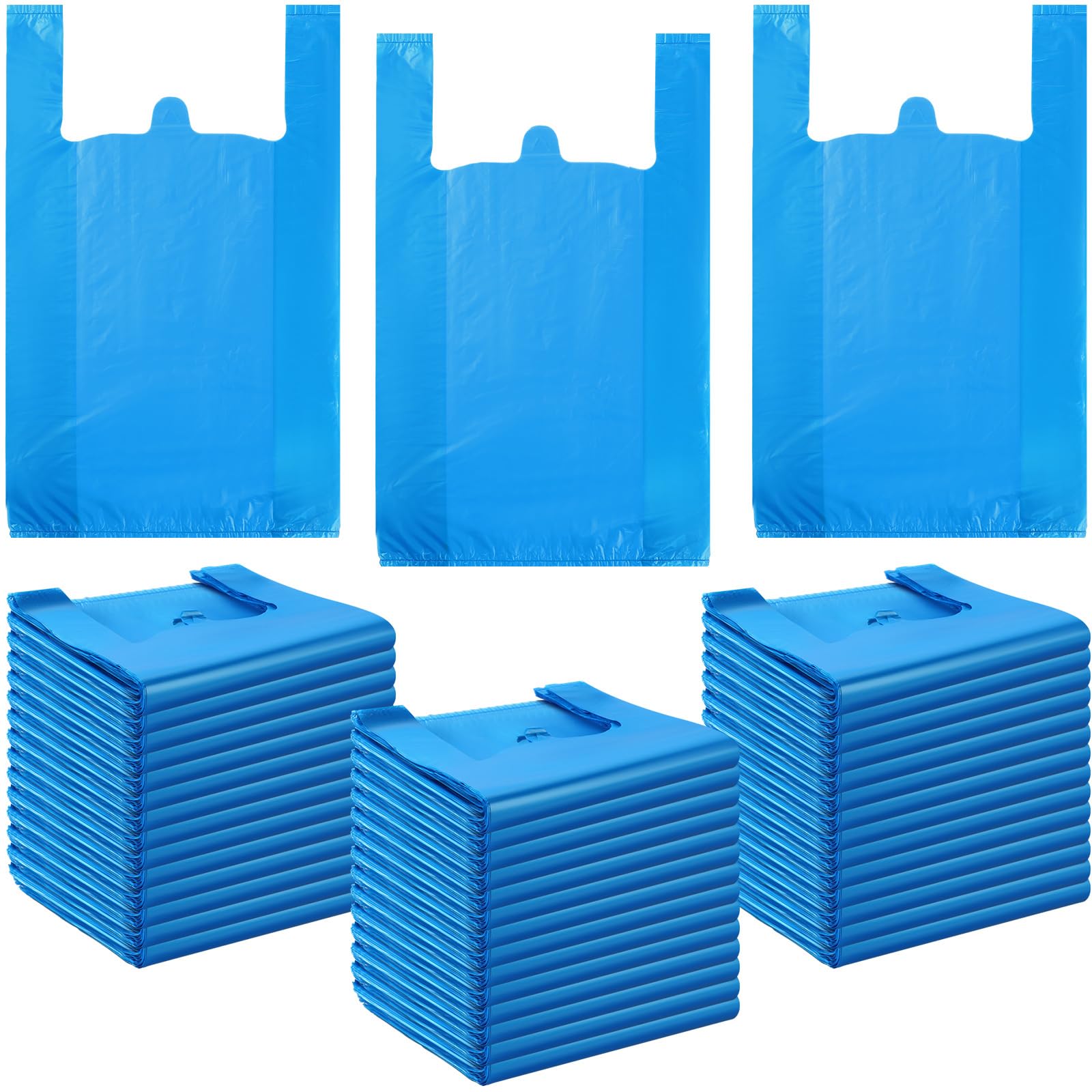 Rich in Quantity: you will receive 300 pieces of blue plastic t shirt bags with handles, which can be applied as storage bags, retail bags, grocery plastic bags, shopping bags, takeout bags, gift bags, snack bags, garbage bags and more, sufficient quantity, enough for small businesses Suitable Size: