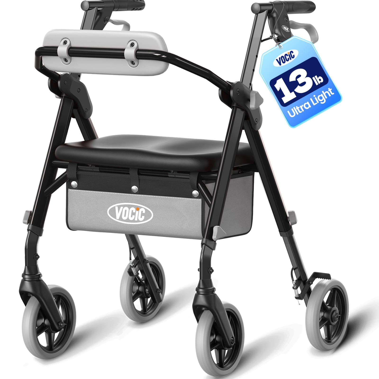 VOCIC Walkers for Seniors, Z12 Rollator Walker with Seat, Ergo Seat & Backrest, Foldable Rollator Adjustable Height, All Terrain Walker, Ultra Light