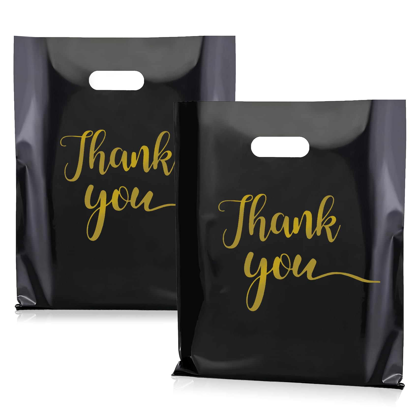 Thank You Merchandise Bags, 12x15 Inch Plastic Thank You Shopping Bags 100 Pack Reusable Black Gift Grocery Goody Retail Bags with Handles for Small