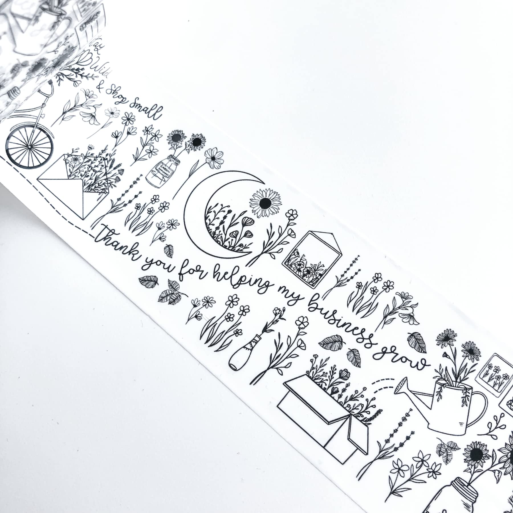 * Go the extra mile and let your customers know you appreciate them shopping small and/or local! Designed with small business owners in mind, this self-adhesive tape makes a perfect finishing touch for your packaging! * Pretty bohemian + whimsical design effortlessly matches branding for a variety o