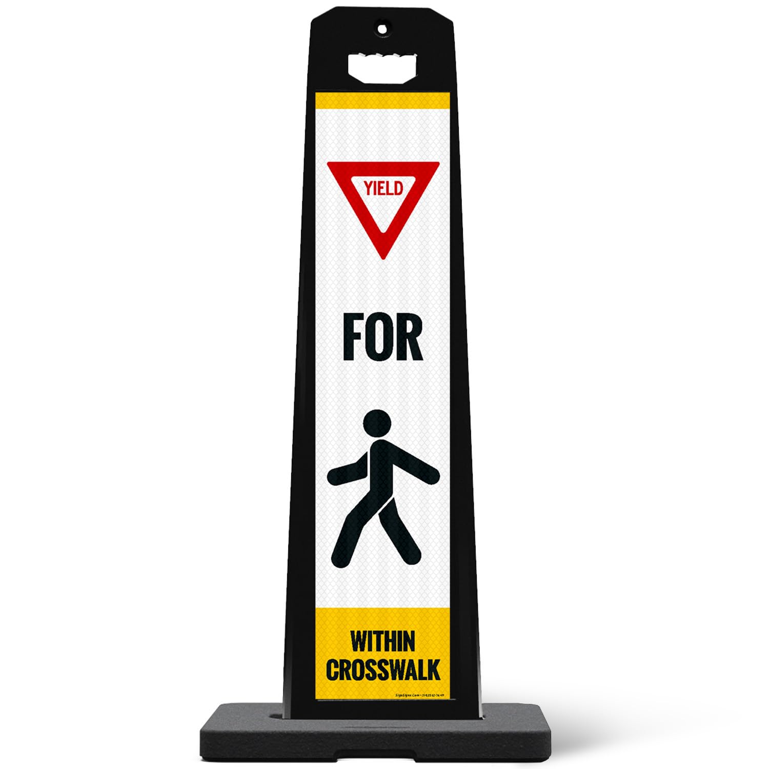 Yield for Pedestrian Within Crosswalk Vertical Panel Sign Kit, Double Sided 3M Engineer Grade Reflective, with 20 lbs Black Portable Rubber Base,