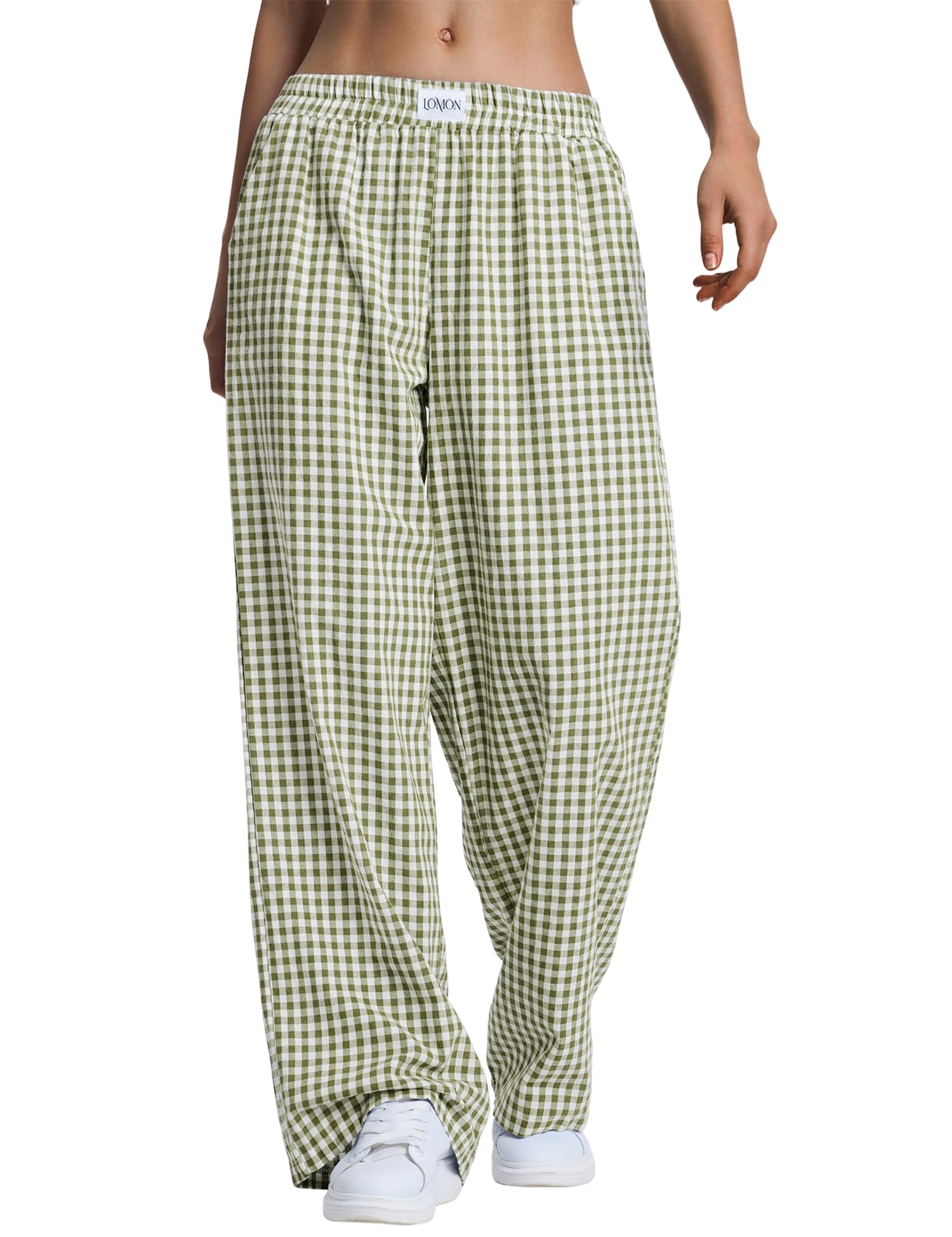LOMON Womens Striped Gingham Boxer Pants Spring Summer Pajama Lounge Pj Casual Plaid Trousers Y2K Beach Bottoms with Pockets
